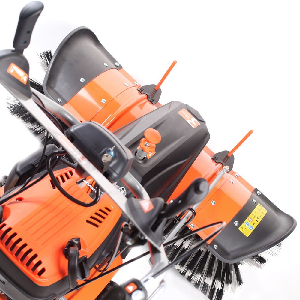 Подметальная всесезонная машина профессионального класса. Электрозапуск двигателя. Опорное колесо большого диаметра делает машину гараздо более меневренной. Регулировки руля и поворота щётки. Возможность использования бункера сбора смёта. Элементы щётки изготовлены изготовлены из износоустойчивого полимера.