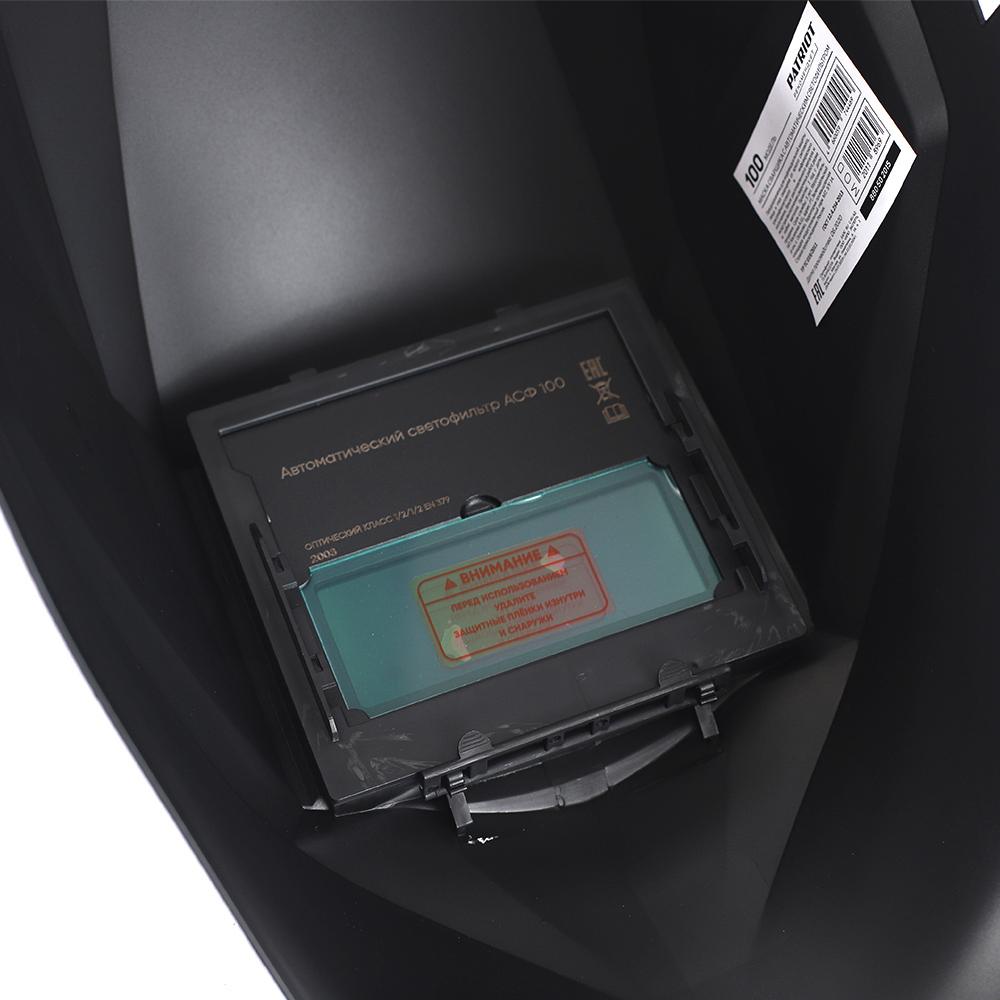 Изготовлена из высокопрочного пластика. В щитке предусмотрен современный самозатемняющийся светофильтр. Фильтр дополнительно защищен поликарбонатным стеклом. Для удобства оголовье легко подстраивается под размер головы, имеются 4 вида регулировки.