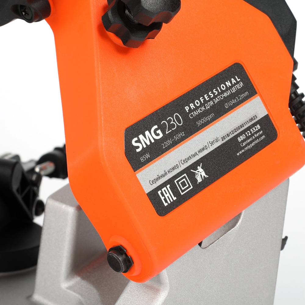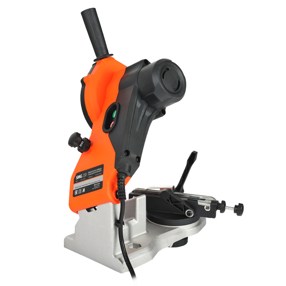 Мини станок предназначен для заточки пильных цепей любых типоразмеров. Высококачественная сборка, литая станина, градуированная шкала, защитный экран и большая ручка – все эти атрибуты делают SMG 230 прекрасным помощником для небольших мастерских.