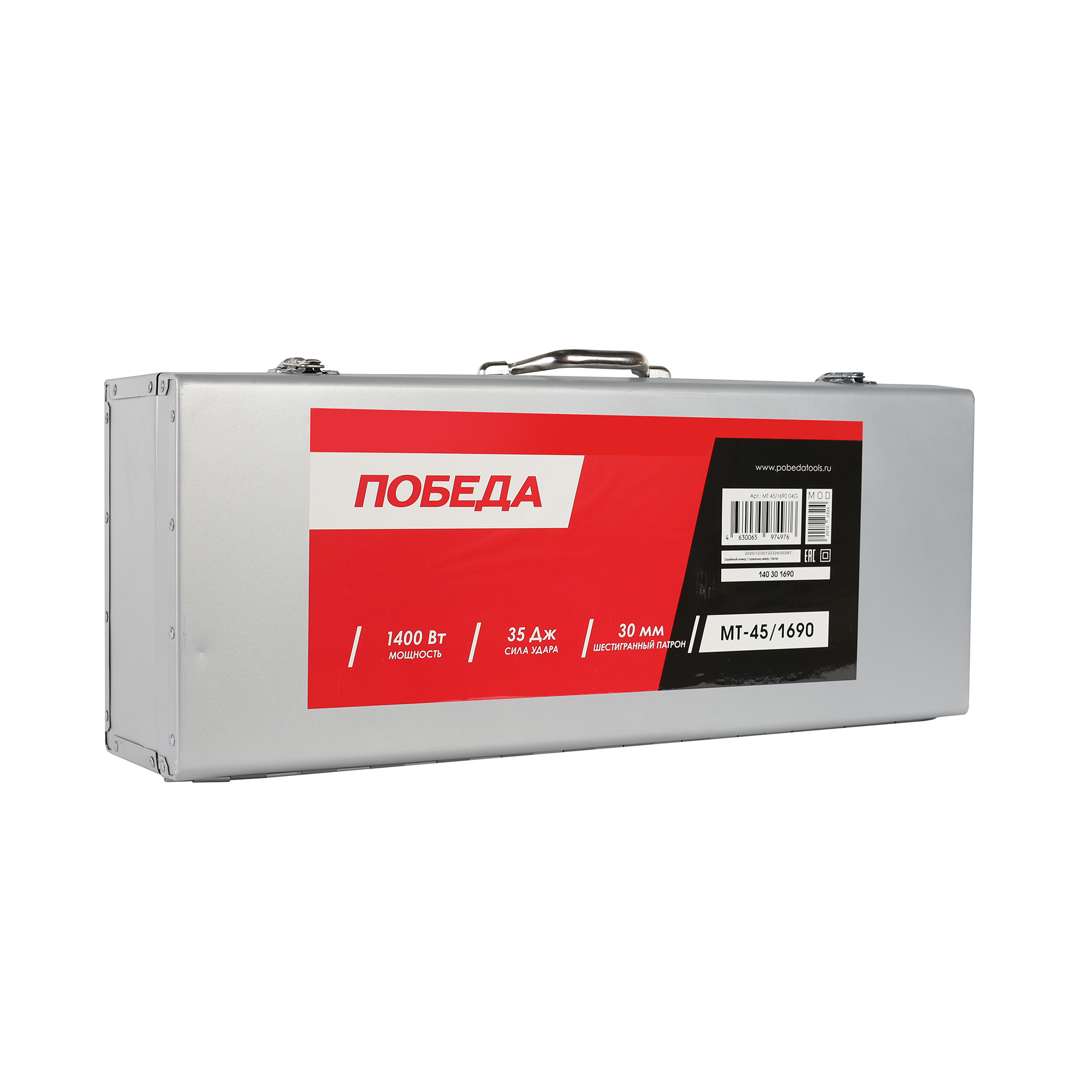 1400 Вт, 1850 уд/мин, энергия удара 35 Дж, шестигранный патрон 30 мм, дополнительная рукоятка, зубило, кейс