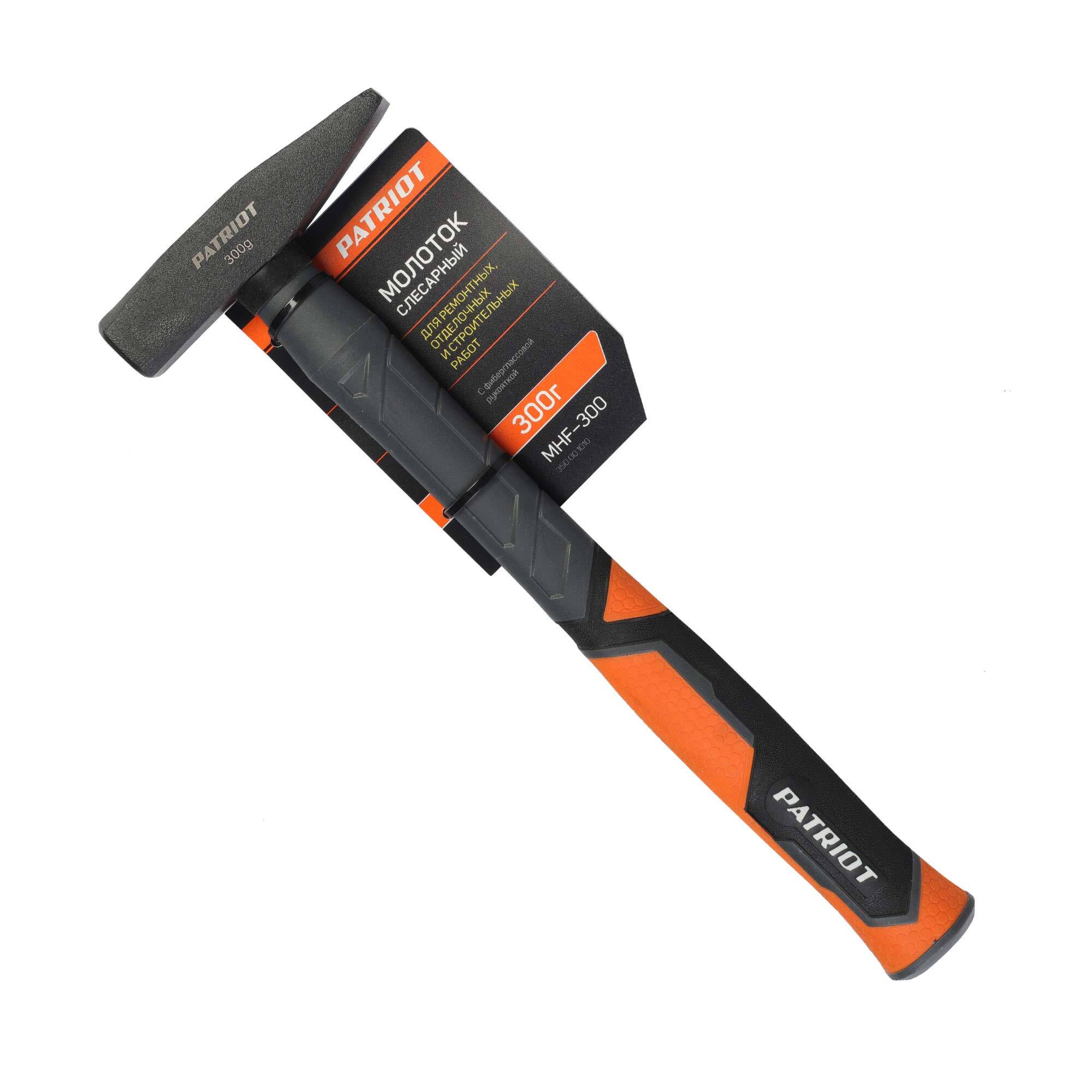 Молоток слесарный PATRIOT MHF-300 для ремонтных и строительных работ. Кованный боек сделан из закаленной стали. Фиберглассовая прорезиненная рукоять защищена от воздействия внешних агрессивных сред и выскальзывания при работе.