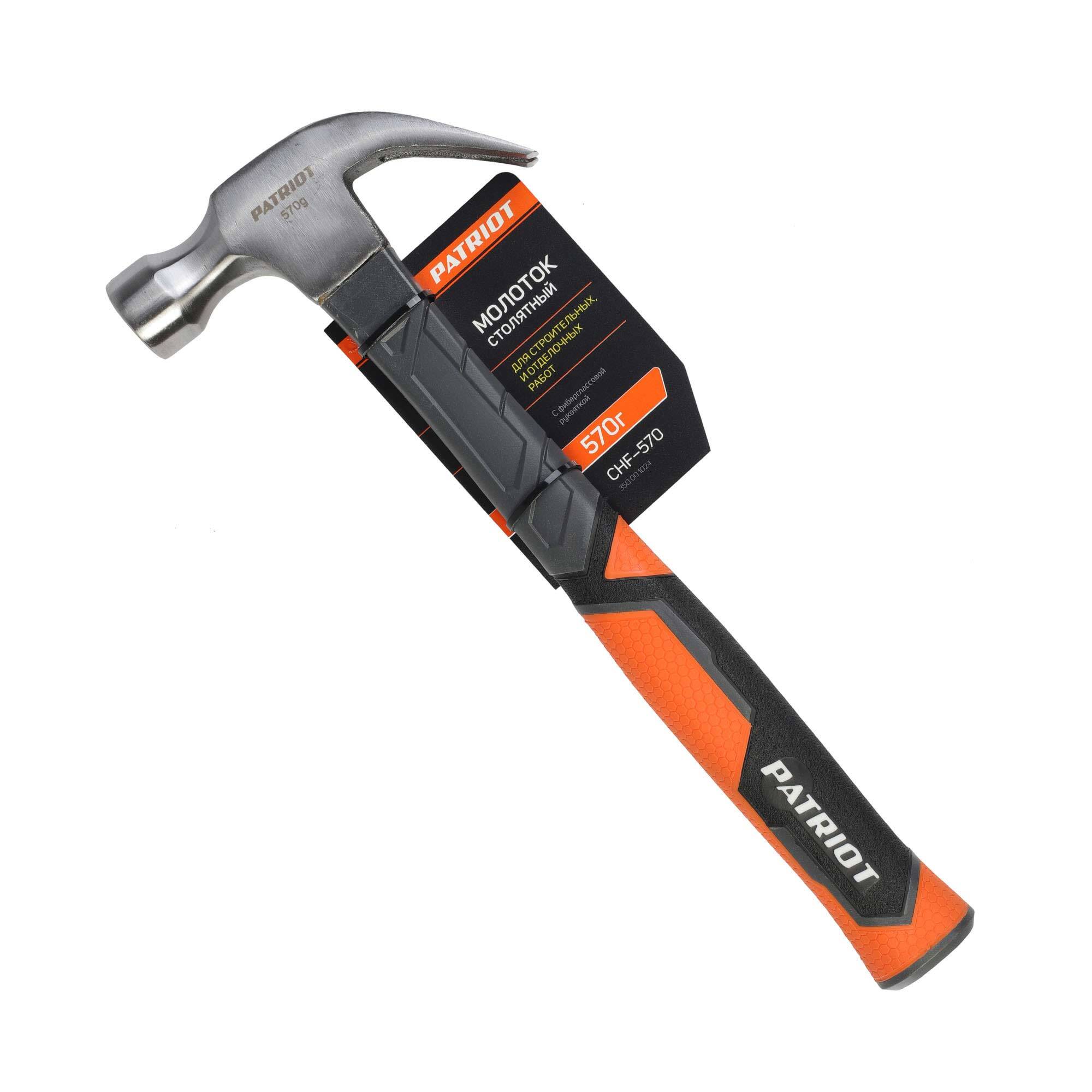 Молоток столярный PATRIOT СHF-570 для ремонтных и строительных работ. Кованная головка выполнена из закаленной стали и рассчитана на сильные удары, а его форма позволяет вытаскивать гвозди из поверхностей. Фиберглассовая прорезиненная рукоять защищена от воздействия внешних агрессивных сред и выскальзывания при работе.