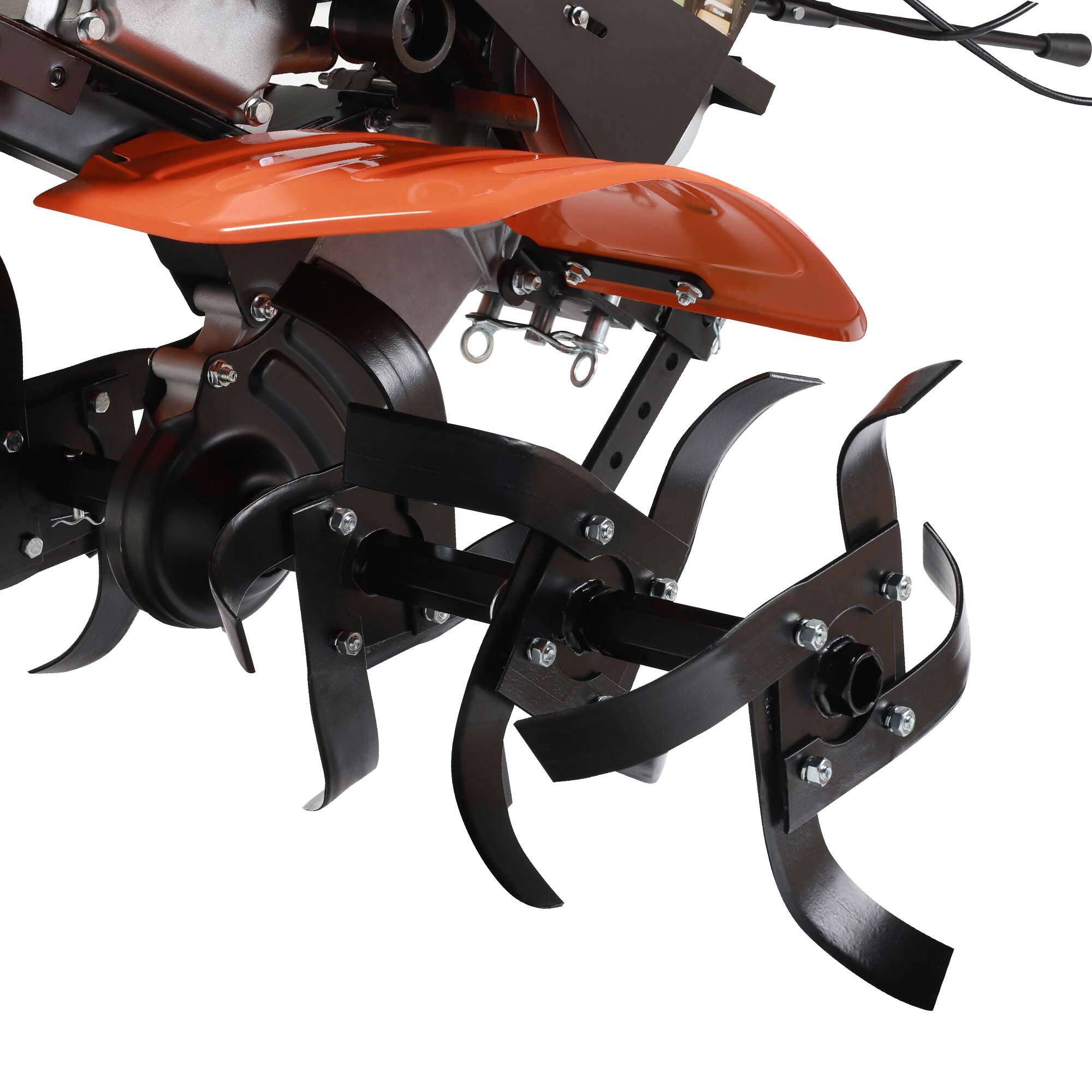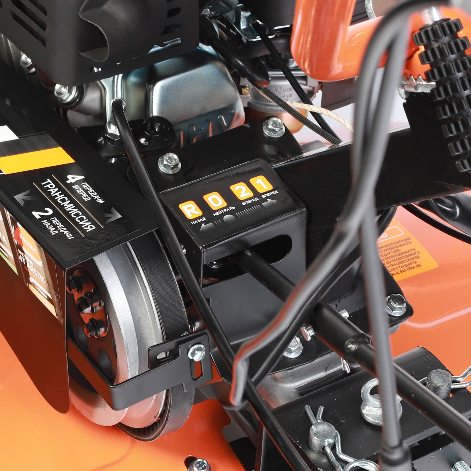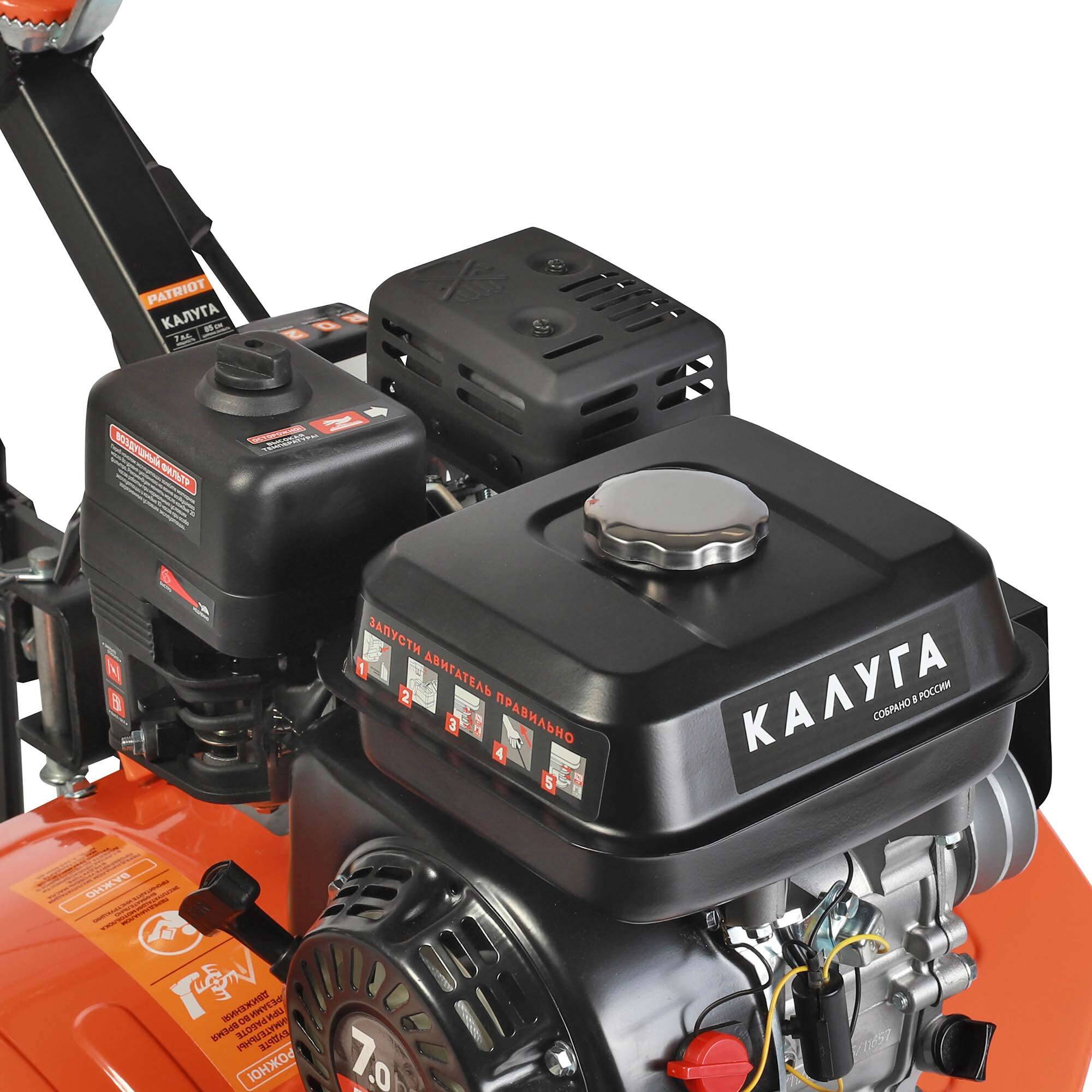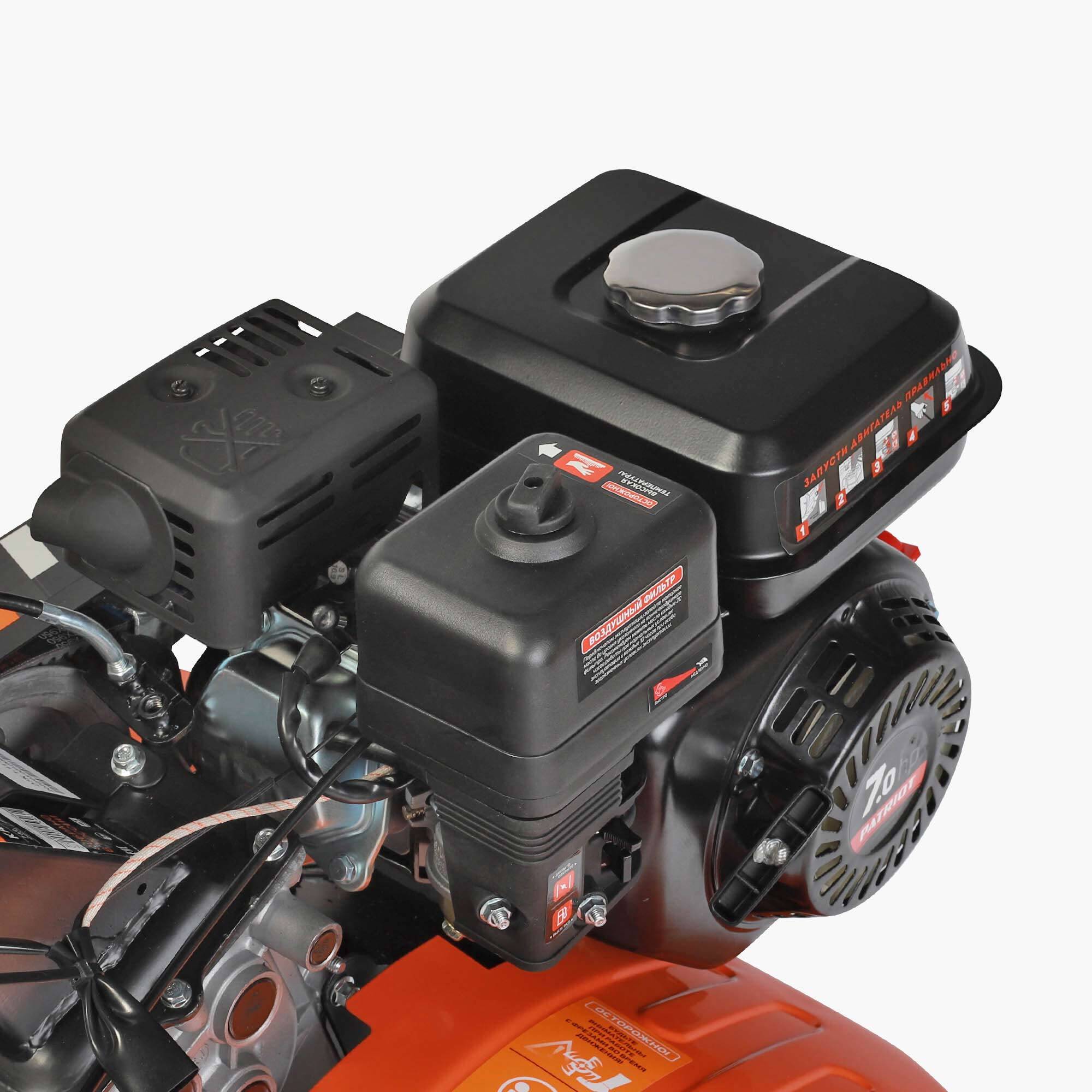 7 л.с, 212 см.куб, топливный бак 3.6 л, 0.6 л картер, ширина обработки 85 см, глубина 16-30 см, фрезы 32 см, цепной редуктор, 4 вперед/2 назад, 4-х тактный двигатель, шкив