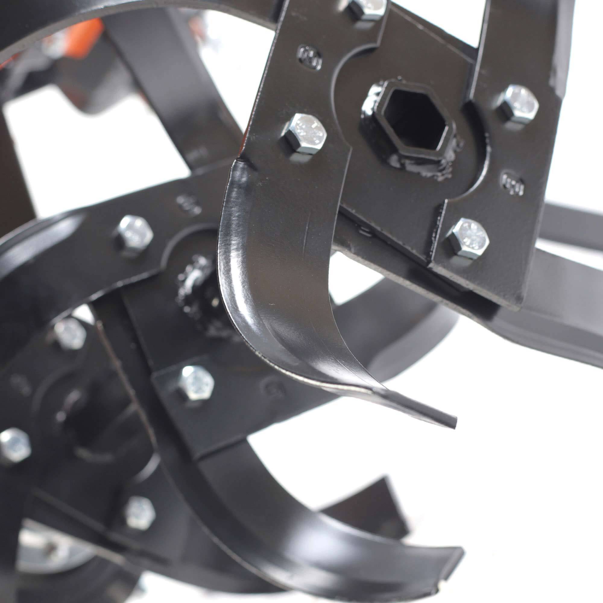 7 л.с, 212 см.куб, топливный бак 3.6 л, 0.6 л картер, ширина обработки 90 см, глубина 16-30 см, фрезы 32 см, чугунный редуктор, 4 вперед/2 назад, 4-х тактный двигатель, шкив