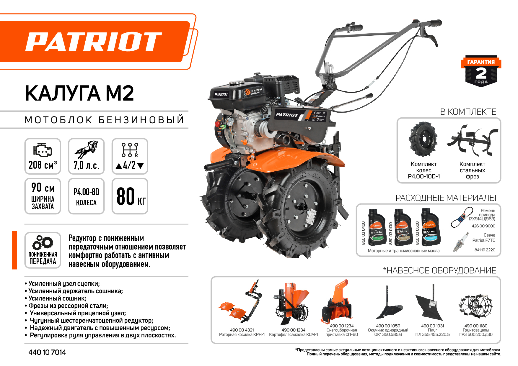 Мотоблок «КАЛУГА М2» является многофункциональным изделием и предназначен для выполнения различных работ на приусадебных участках, в садах и огородах индивидуального пользования. Мотоблок удобен и прост в эксплуатации. Работа на мотоблоке не требует специальной подготовки, но следует иметь в виду, что при работе с каждым навесным орудием необходимы определенные навыки.
