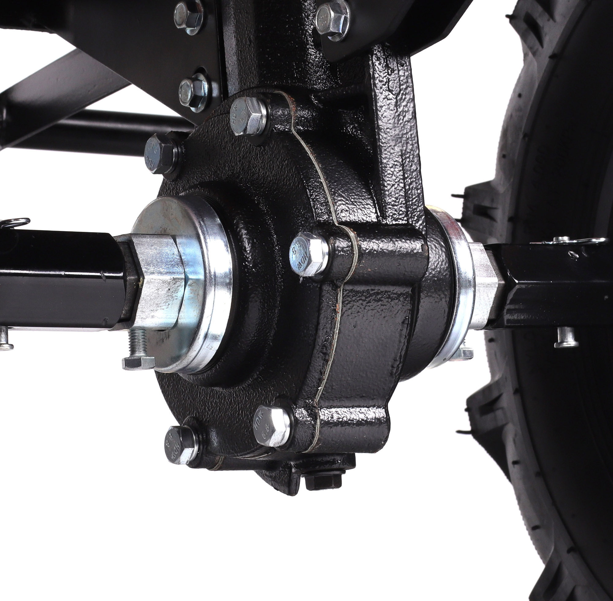 9 л.с, 270 см.куб, топливный бак 5.5 л, 1.1 л картер, ширина обработки 135 см, глубина 18-36 см, фрезы 36 см, цепной редуктор, 3 вперед/1 назад, 4-х тактный двигатель, ВОМ, сошник