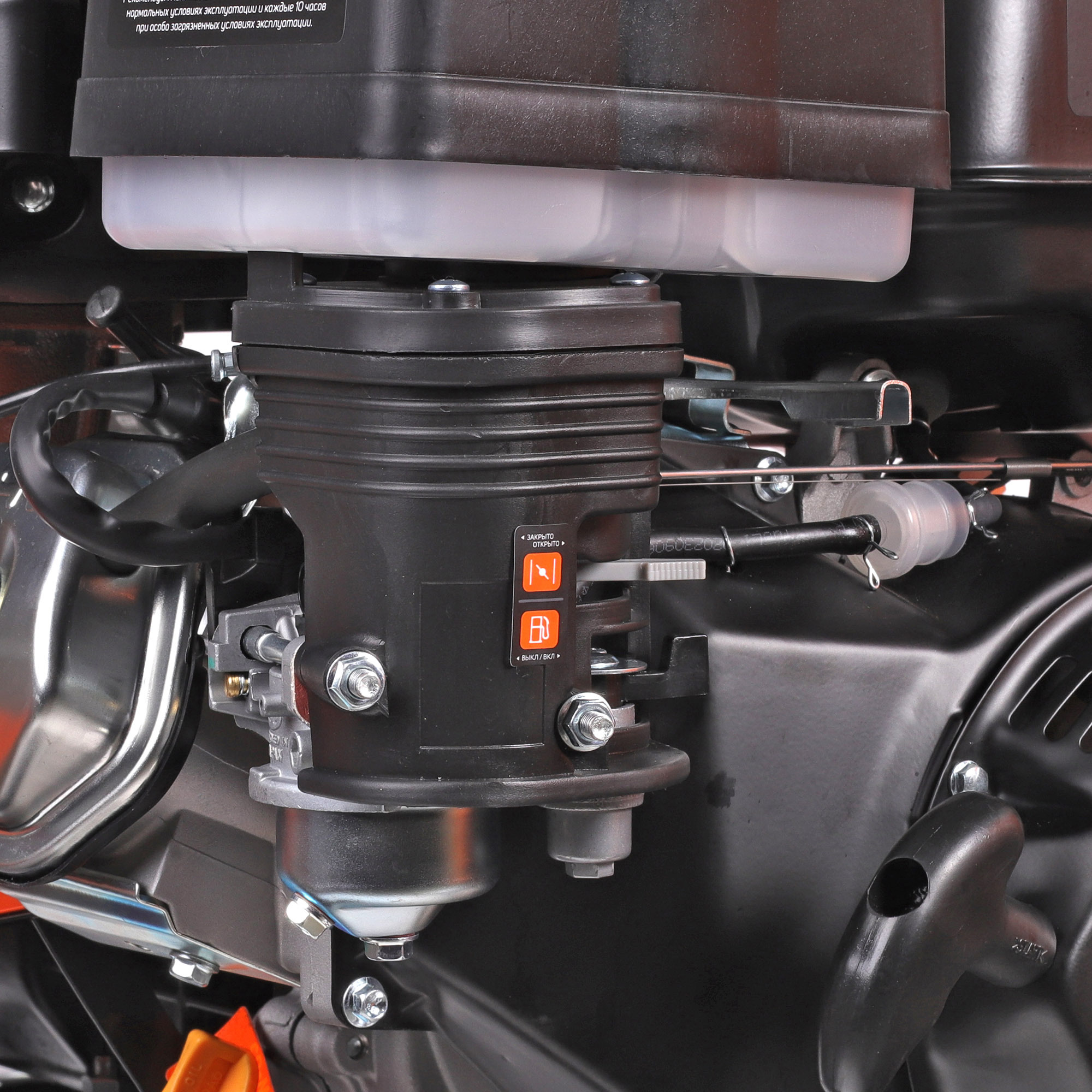 9 л.с, 270 см.куб, топливный бак 5.5 л, 1.1 л картер, ширина обработки 135 см, глубина 18-36 см, фрезы 36 см, цепной редуктор, 4 вперед/2 назад, 4-х тактный двигатель, сошник, ВОМ