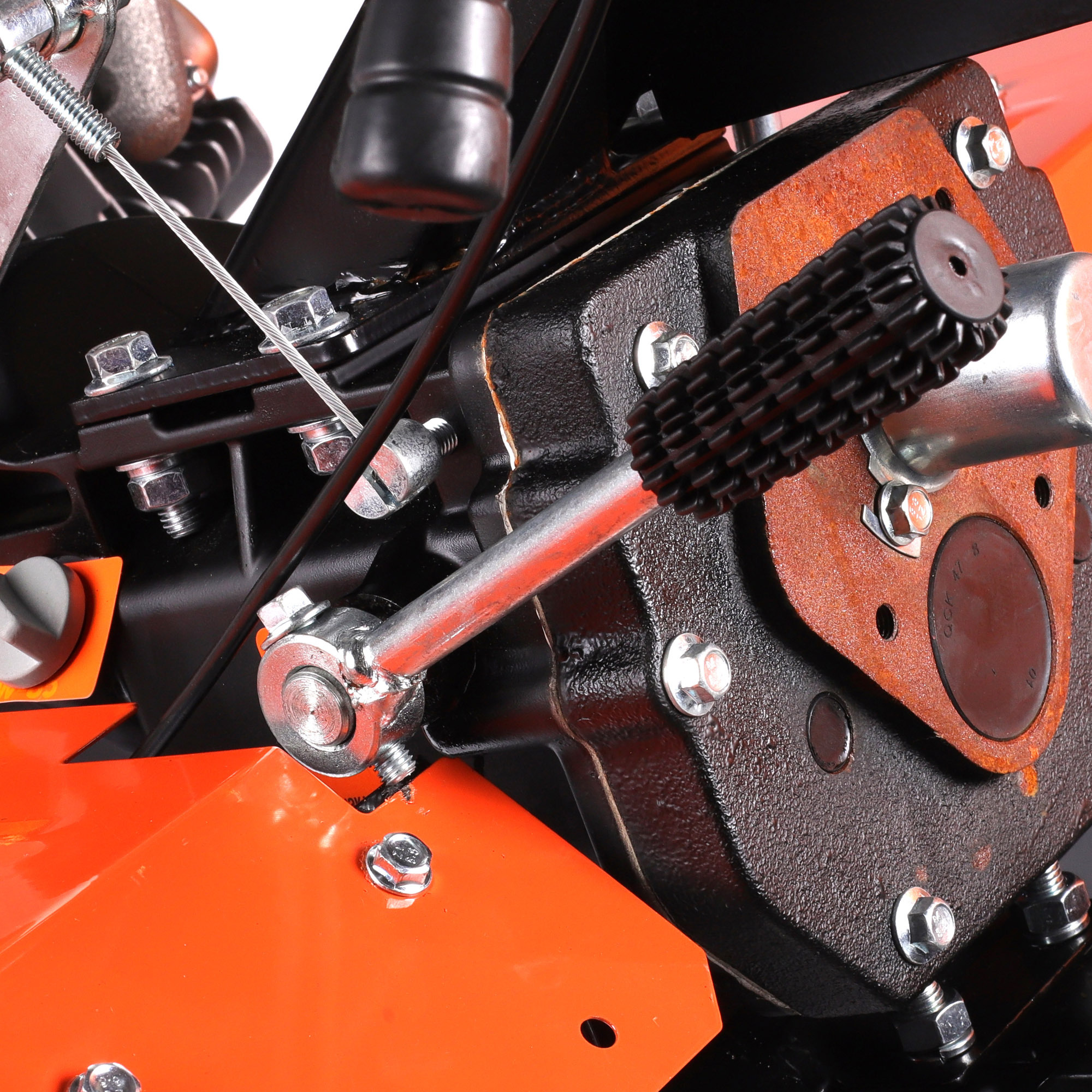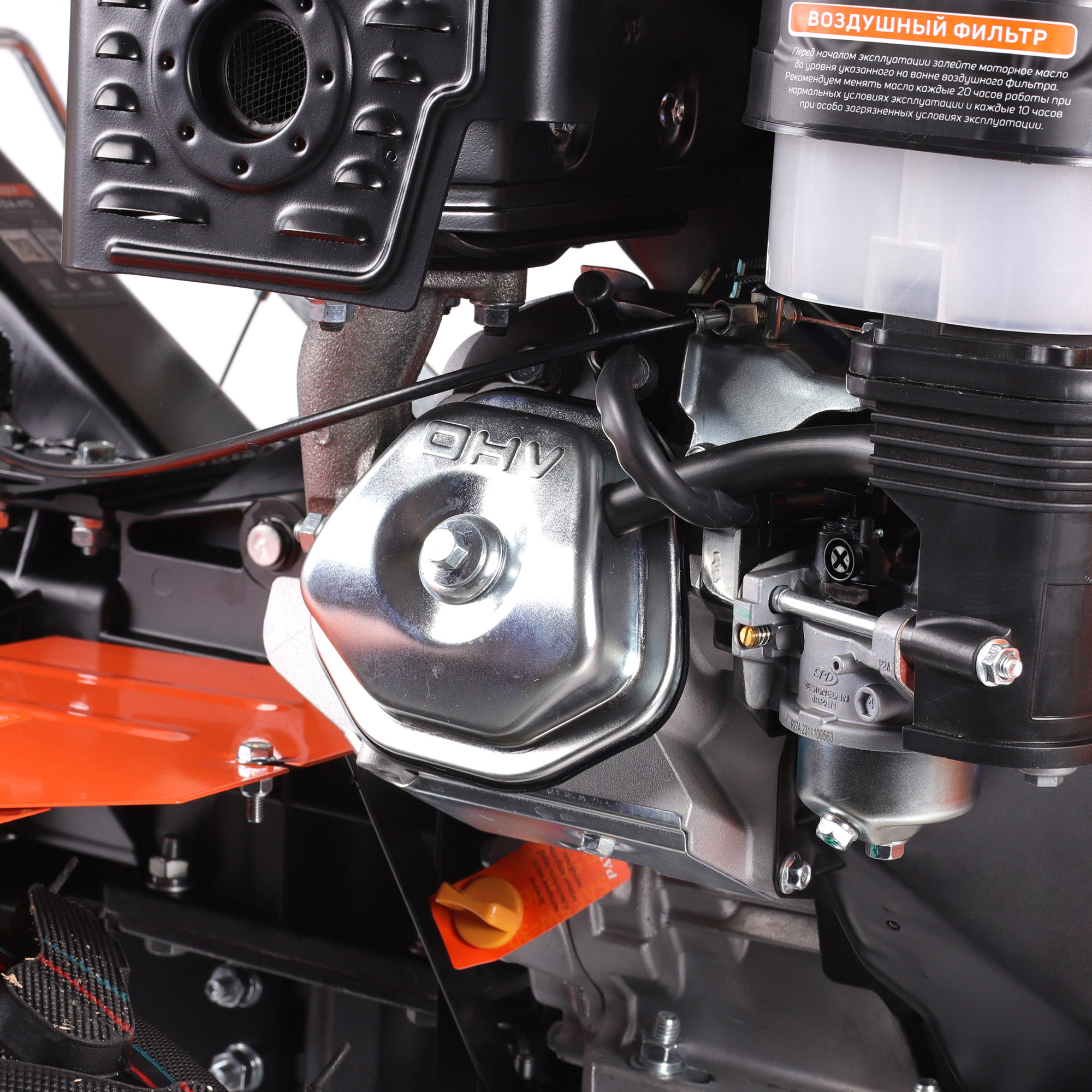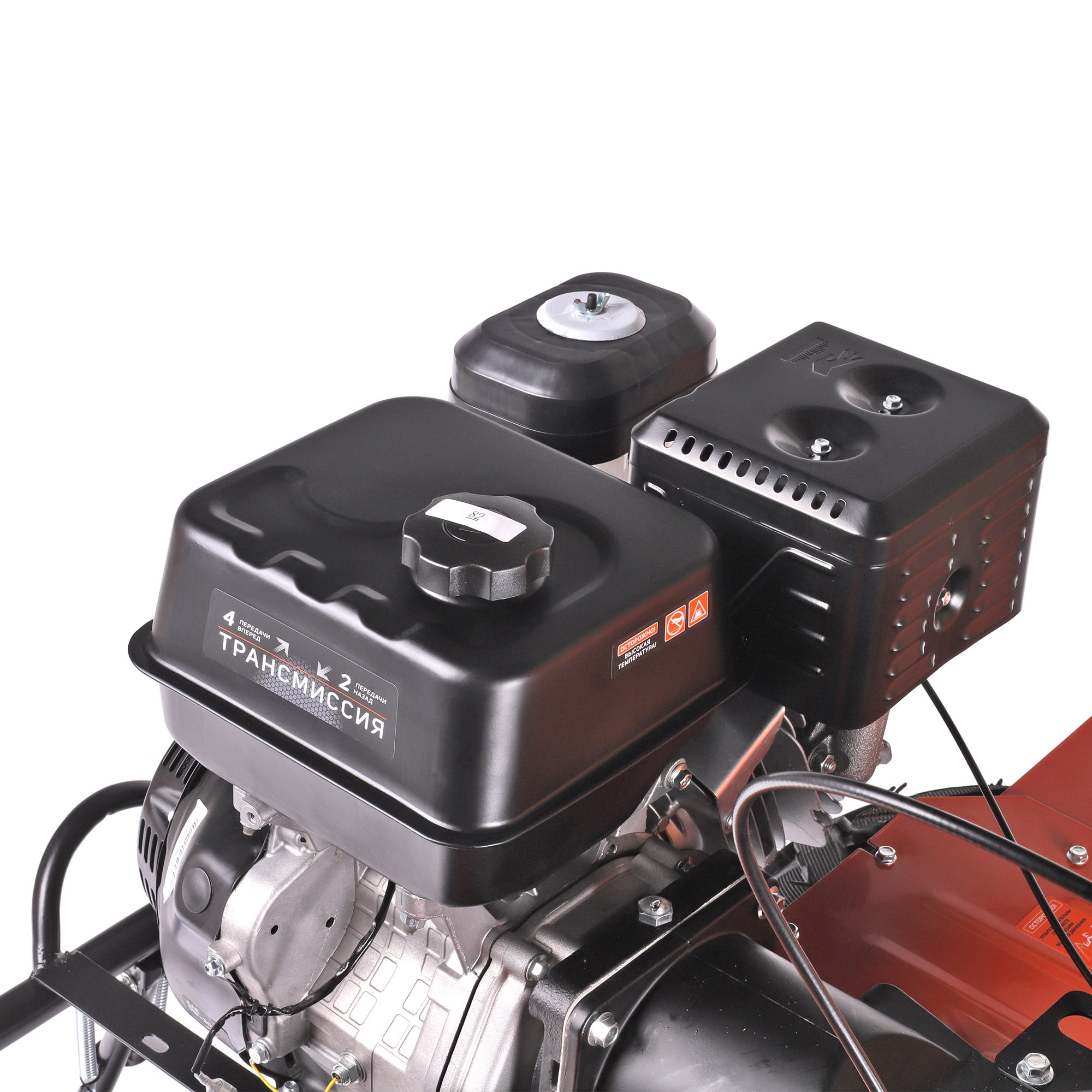 15 л.с, 420 см.куб, топливный бак 5.5 л, 1.1 л картер, ширина обработки 135 см, глубина 18-36 см, фрезы 36 см, цепной редуктор, 4 вперед/2 назад, 4-х тактный двигатель, сошник, ВОМ