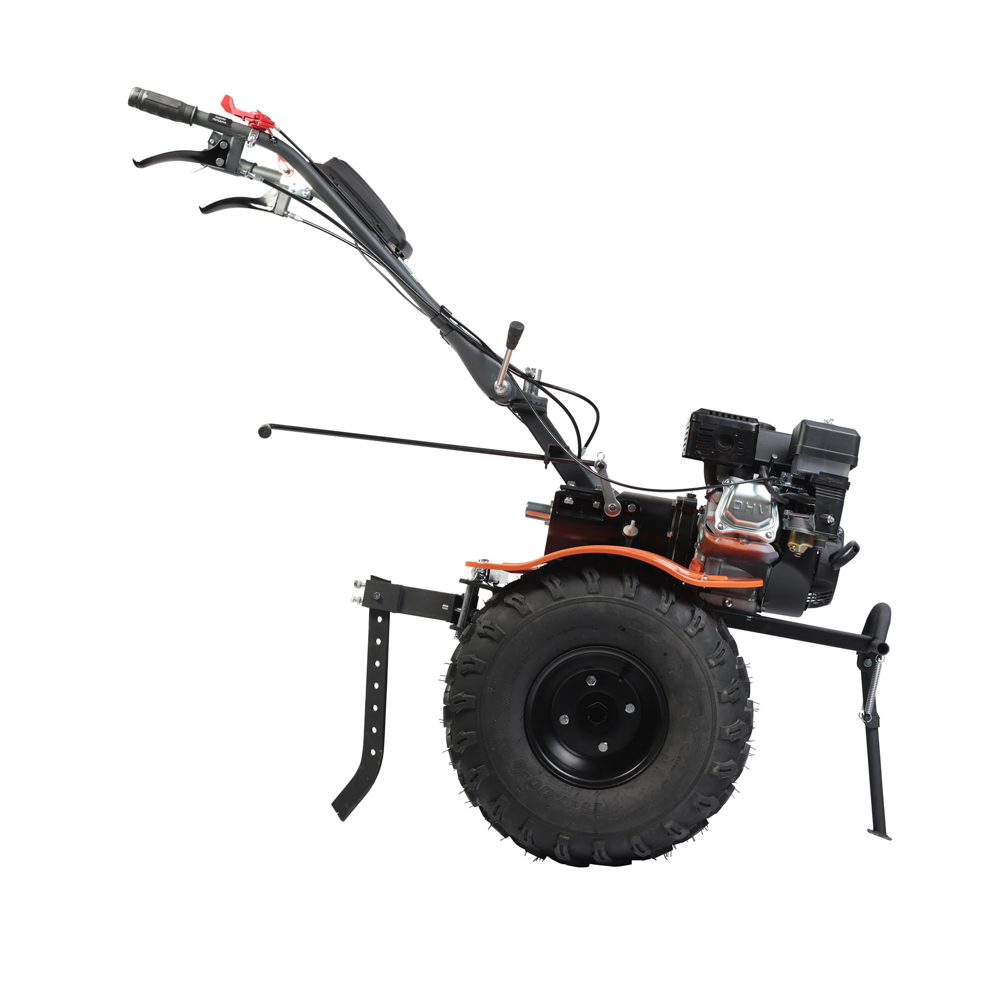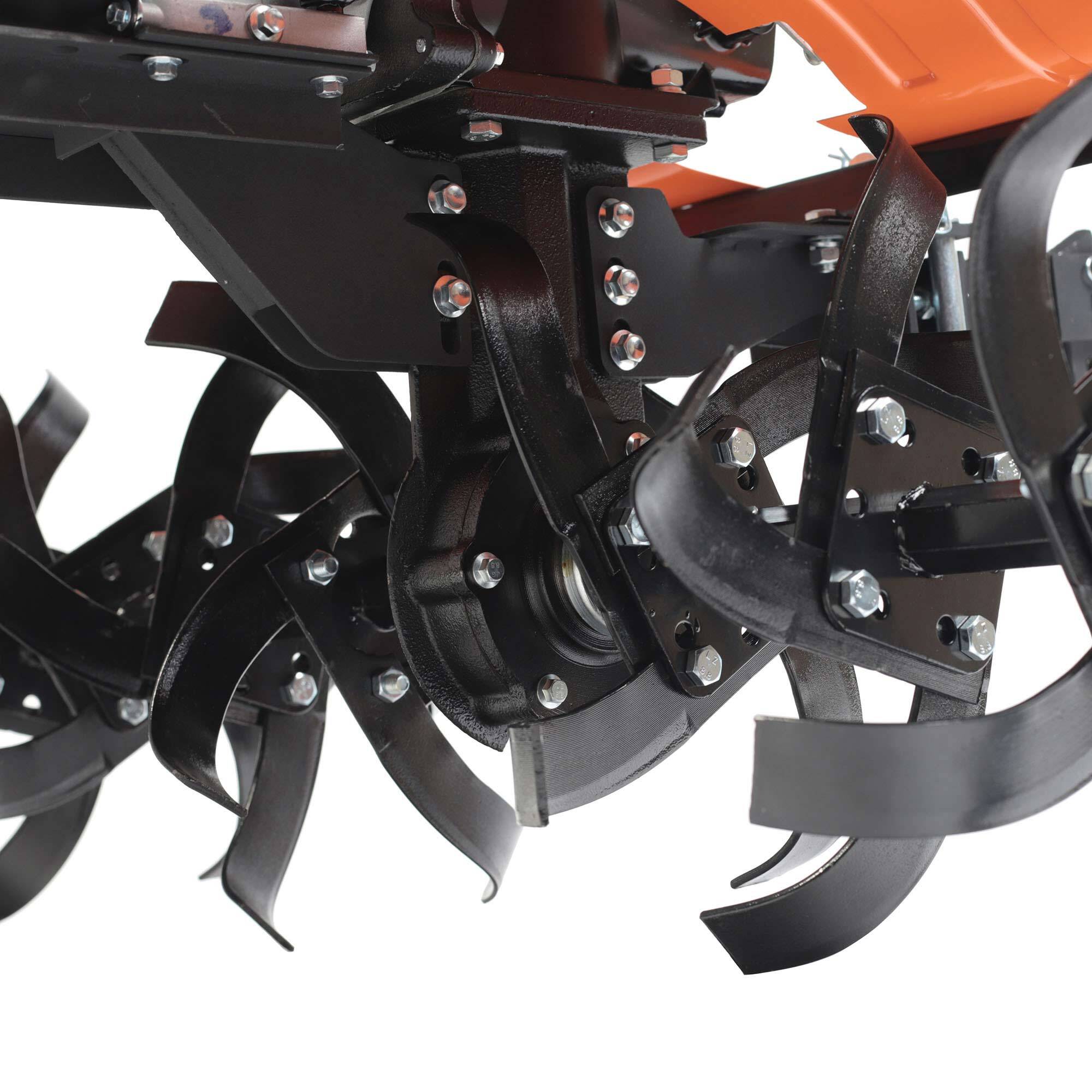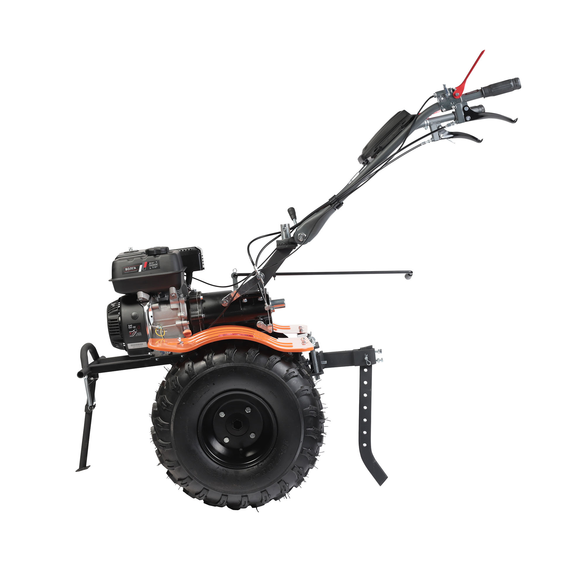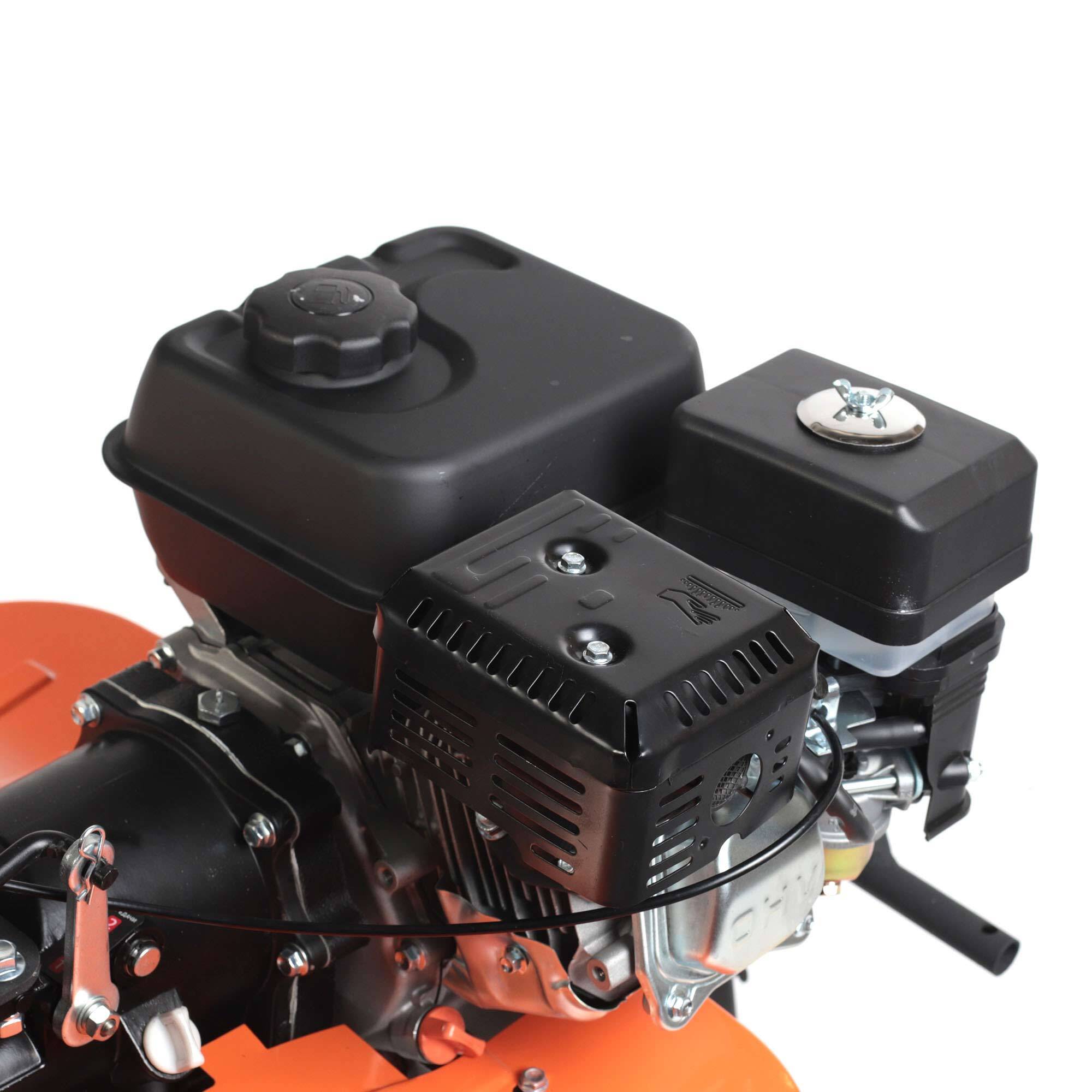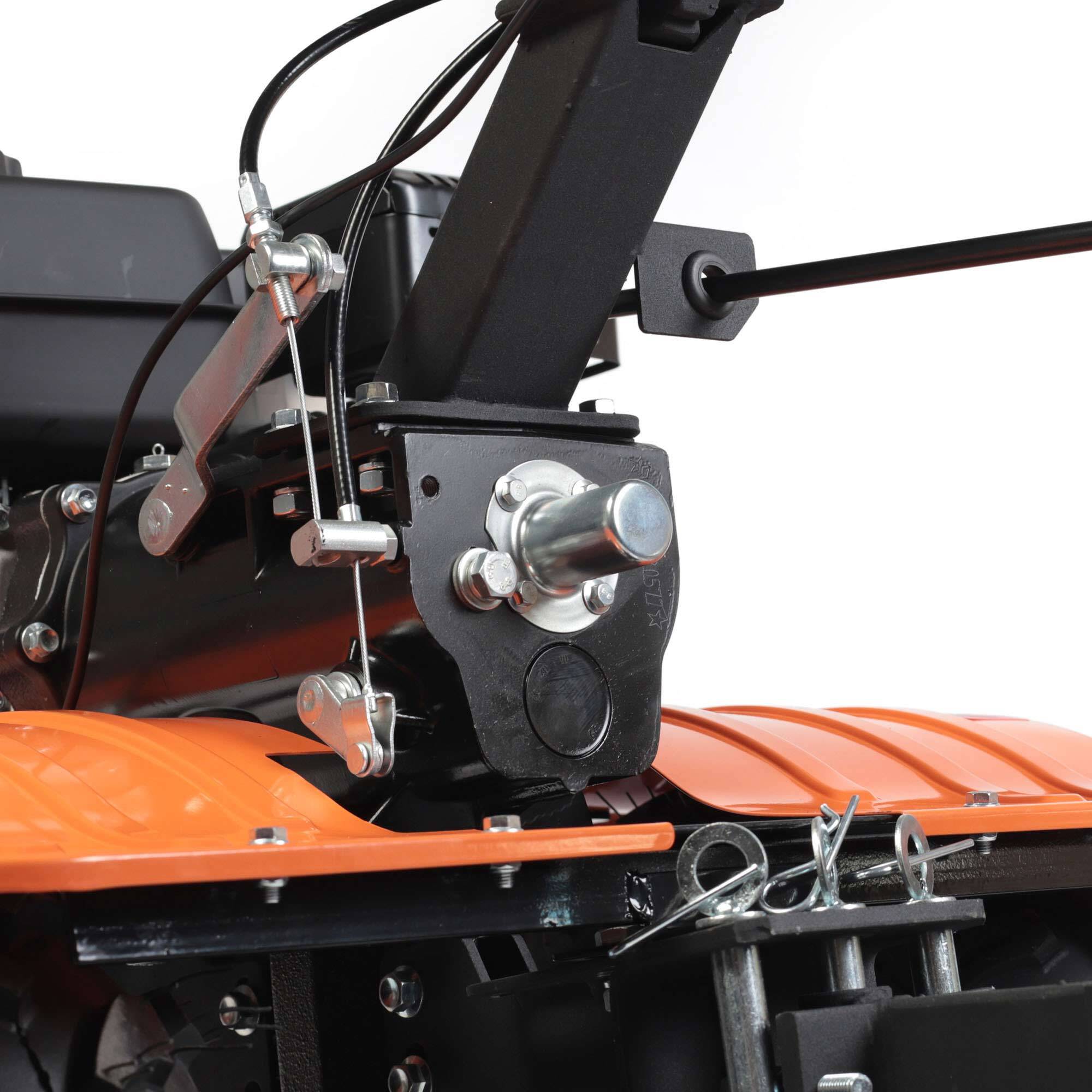 7 л.с, 208 см.куб, топливный бак 3.6 л, 0.6 л картер, ширина обработки 90 см, глубина 17-34 см, фрезы 36 см, чугунный редуктор, 2 вперед/1 назад, 4-х тактный двигатель, ВОМ