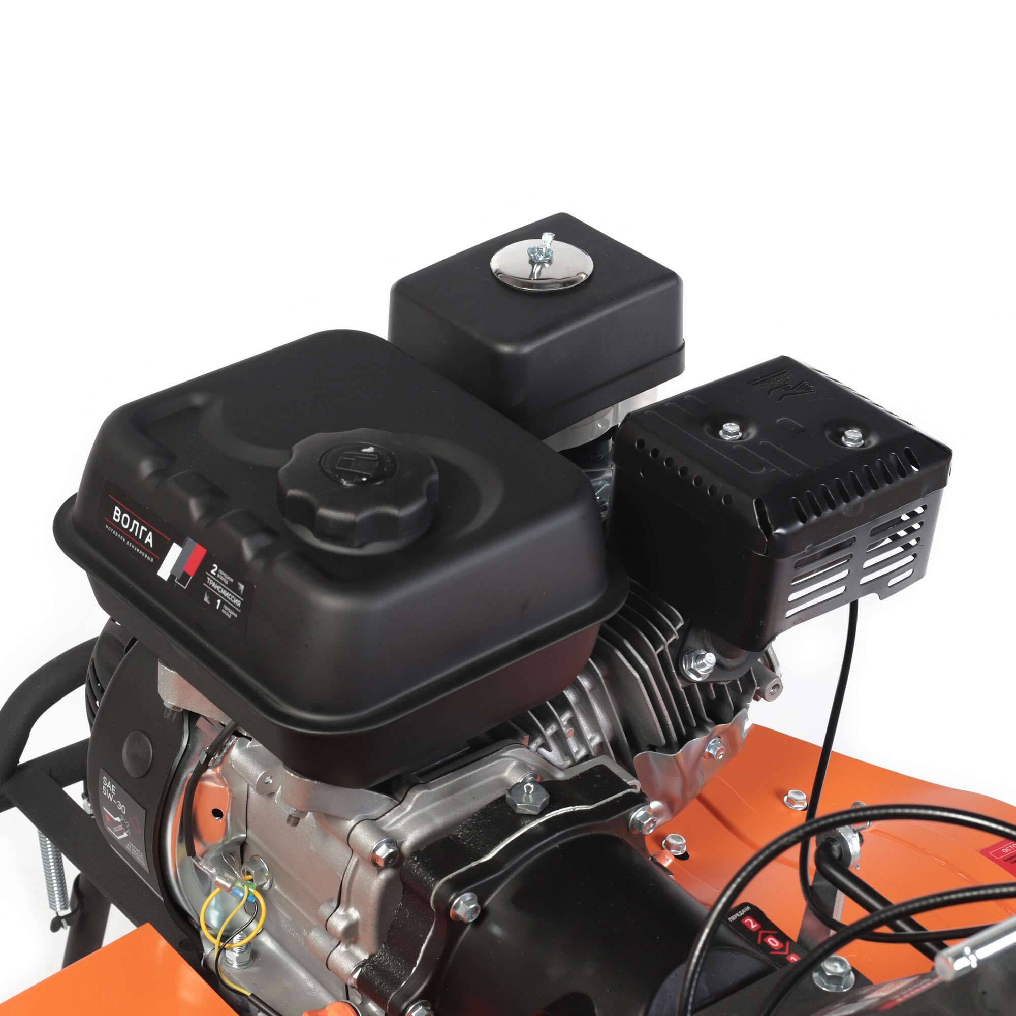 Волга – универсальный бензиновый мотоблок с четырехтактным двигателем и удлиненной колесной базой. Оснащен валом отбора мощности (ВОМ), многодисковым сцеплением в масляной ванне и шестеренчатым редуктором. 2-х ступенчатая трансмиссия позволяет выбрать режим обработки почв, а укрепленная рама с универсальной сцепкой - установить навесное оборудование или тележкку. К ВОМ можно подключить активное оборудование. В комплекте закаленные усиленные фрезы для обработки твердых почв, пневматические колеса с глубоким протектором, сошник. Кнопка включения, рукоятка газа и рычаги привода расположены на руле. Наклон руля регулируется.