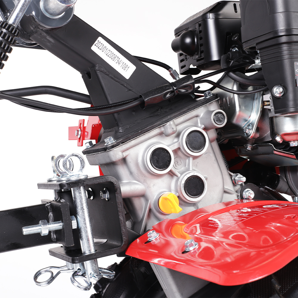 7 л.с, 208 см.куб, топливный бак 3.6 л, 0.6 л картер, ширина обработки 85 см, глубина 16-30 см, алюминиевый цепной редуктор, 2 вперед/1 назад, 4-х тактный двигатель, шкив