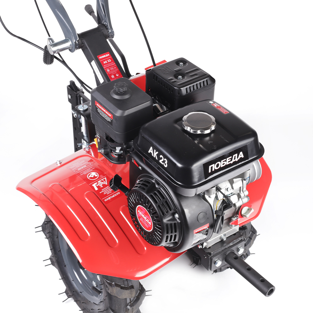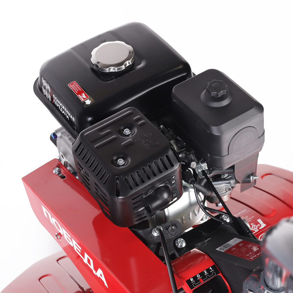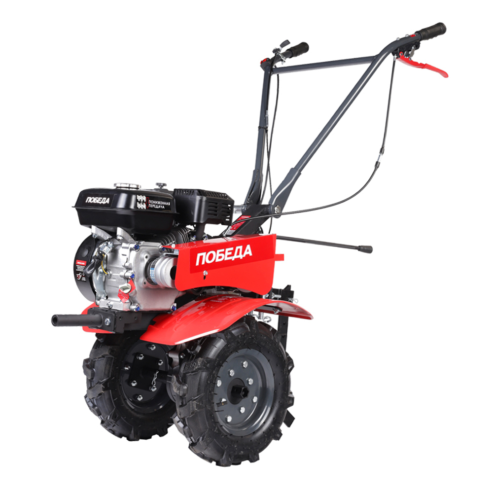 Универсальный мотоблок Победа предназначен для выполнения различных работ по рыхления и культивации почвы на приусадебных участках. Мотоблок оснащен мощным 4-х тактным бензиновым двигателем и надежной многоступенчатой трансмиссией - шестеренчато-цепным редуктором в алюминиевом корпусе. Установка различного навесного оборудования значительно расширяет применение мотоблока от уборки снега и листвы, обработки почвы до перевозки грузов. Большие пневматические колеса гарантируют отличную проходимость.