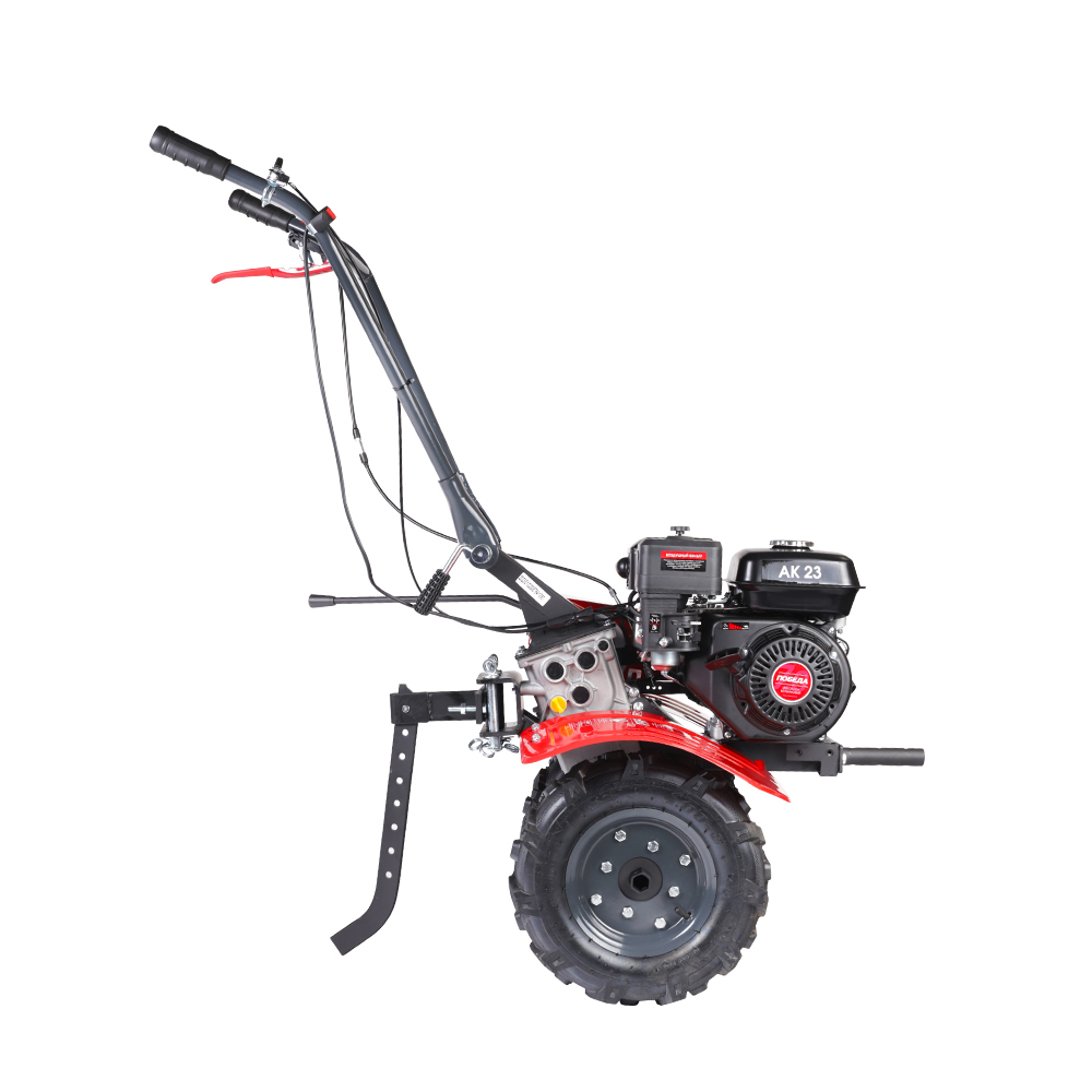 7 л.с, 208 см.куб, топливный бак 3.6 л, 0.6 л картер, ширина обработки 85 см, глубина 16-30 см, алюминиевый цепной редуктор, 2 вперед/1 назад, 4-х тактный двигатель, без фрез, шкив