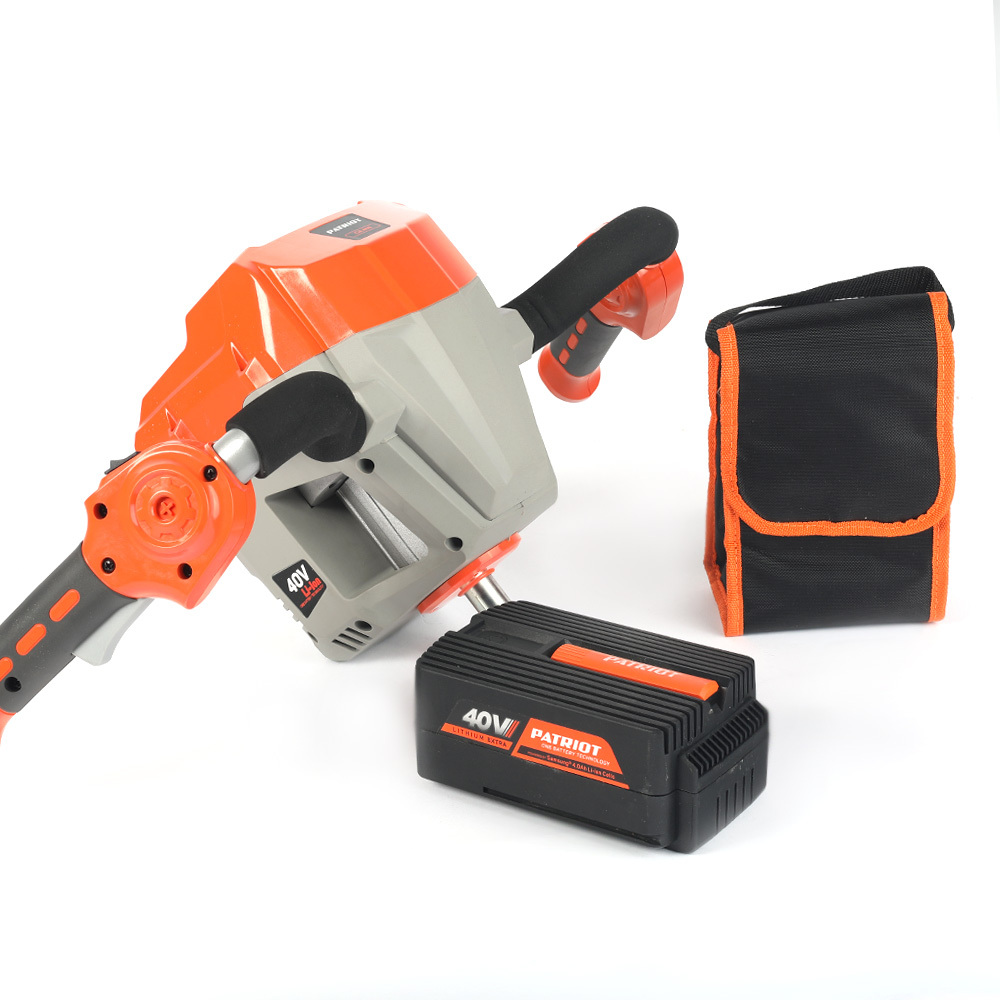 Аккумуляторный универсальный бур PATRIOT СА 408 Li. Поставляется без насадок, аккумулятора и зарядного устройства. Предназначен для бурения земли и льда на приусадебных участках, а также для смешивания строительных смесей с помощью различных насадок . Используется с аккумуляторами "Patriot" серии BL, напряжением 40 Вольт. Шнеки в комплект не входят. Рекомендуется использовать со шнеками "Patriot". Эргономичные обрезинненые рукоятки. 5-ти ступенчатый планетарный редуктор.