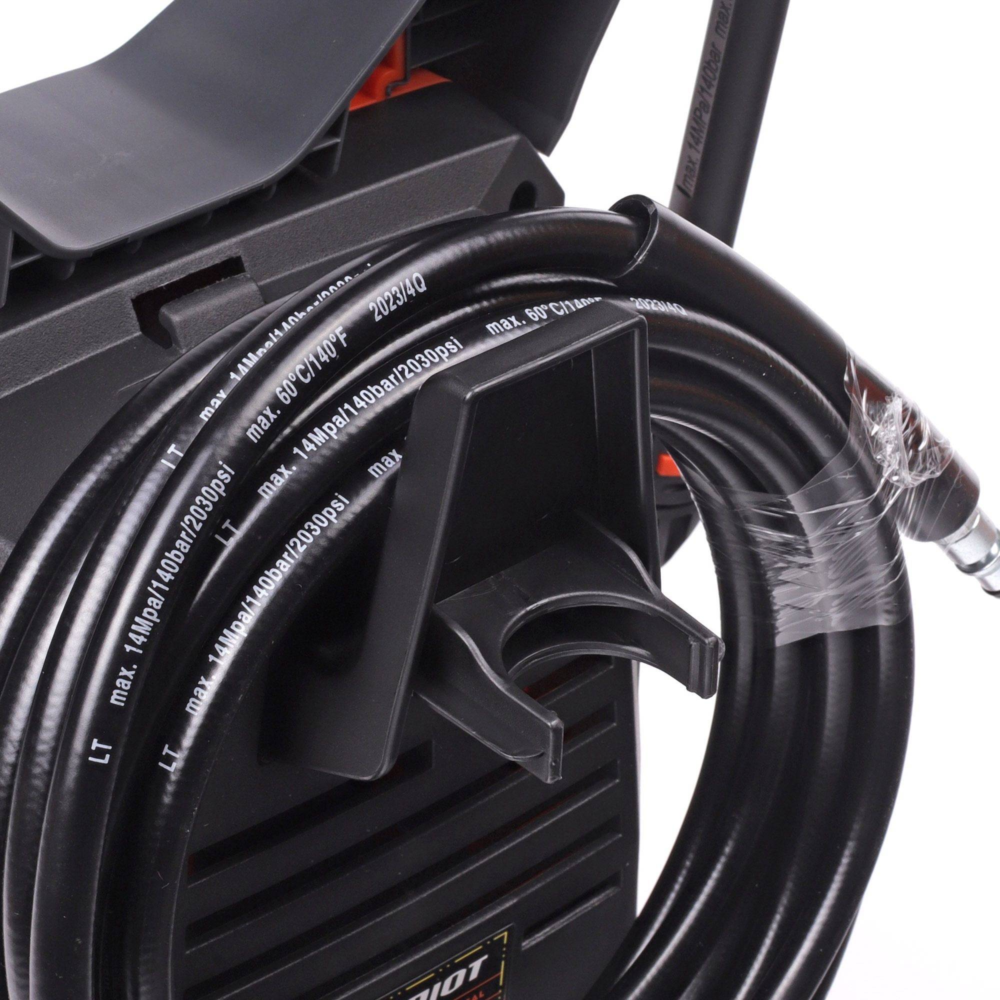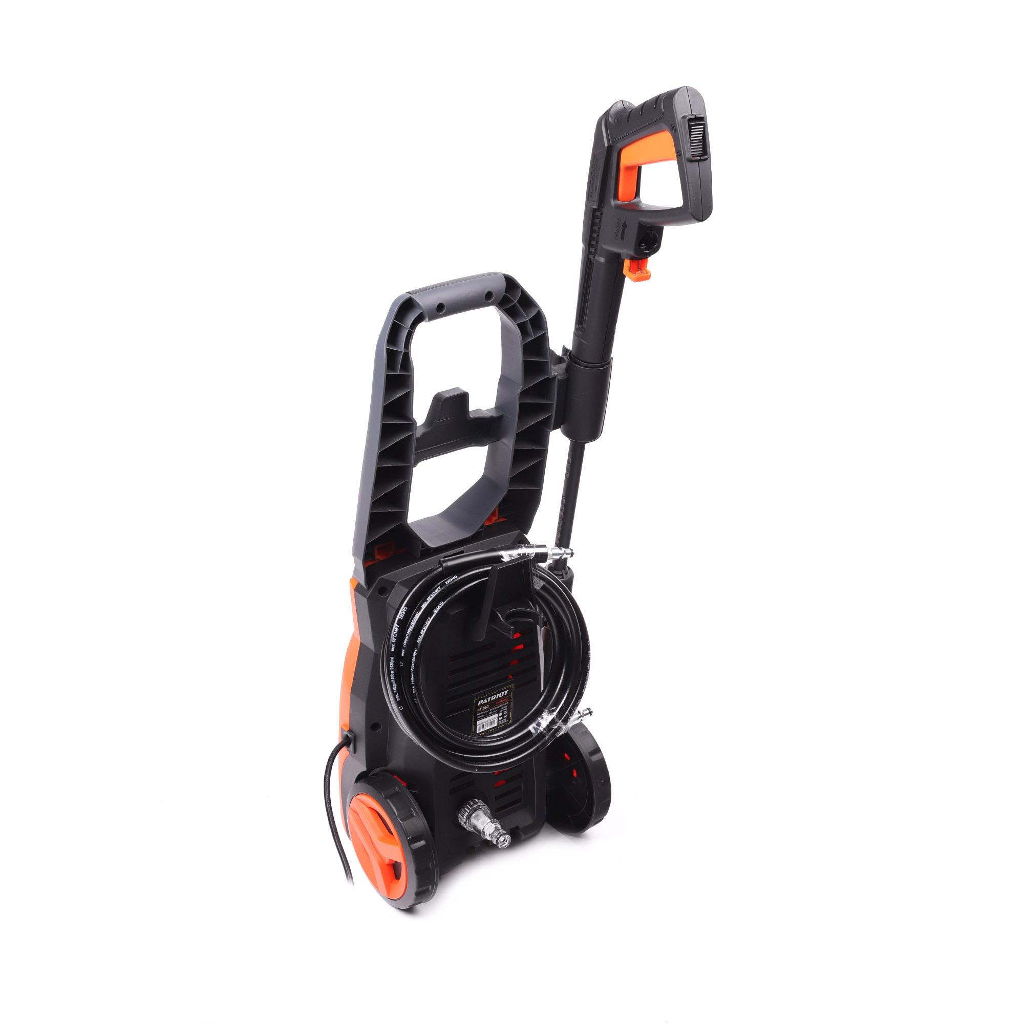 1600 Вт, 390 л/час, 110 бар, самовсасывающая, коллекторный, 5 м шланг армированный ПВХ, помпа из алюминия, поршни из стали, фильтр в комплекте, колеса