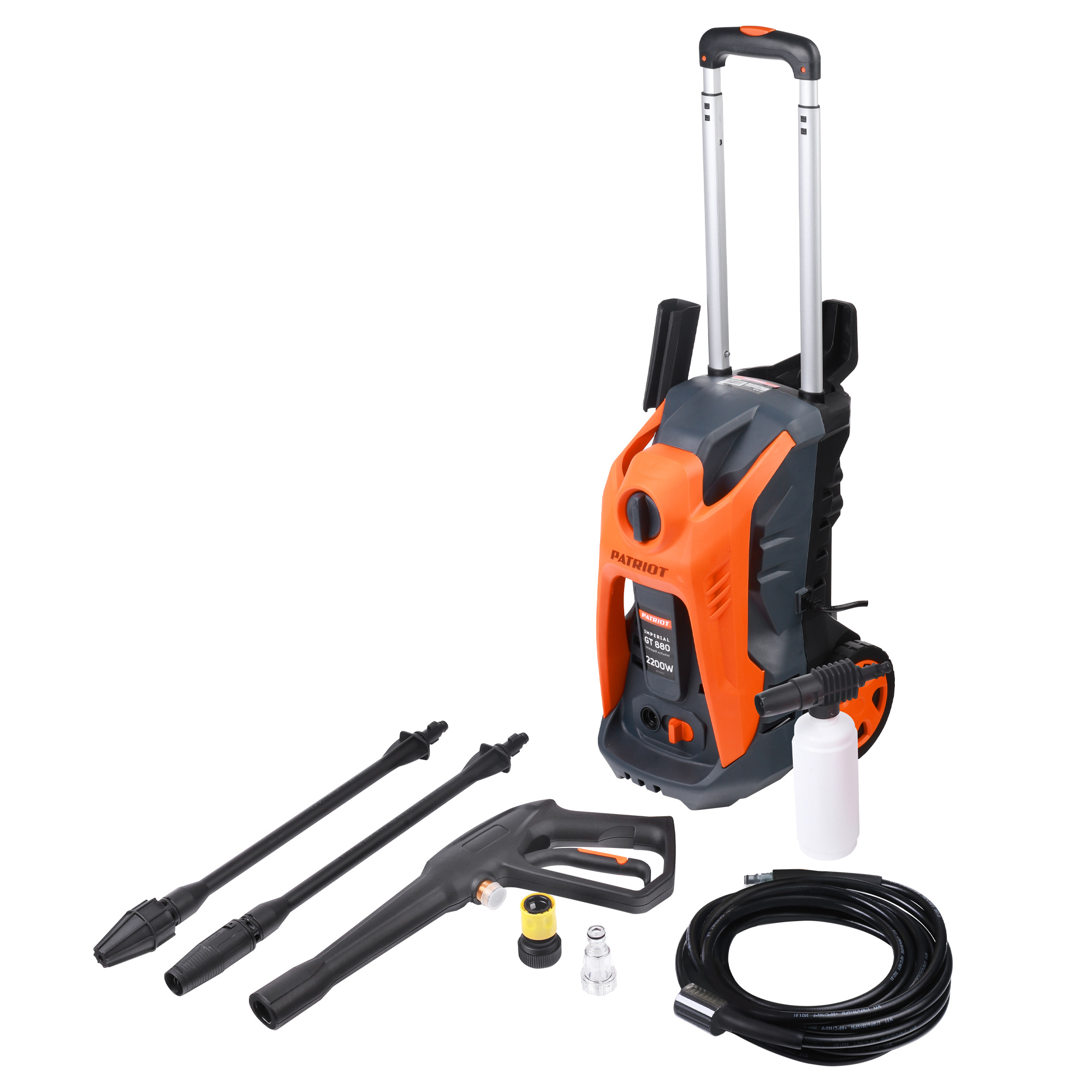 2200 Вт, 300 лчас, 160 бар, самовсасывающая, коллекторный, 7 м шланг армированный ПВХ, помпа из алюминия, поршни из стали, колеса, фильтр, телескопическая рукоятка, хранение аксессуаров