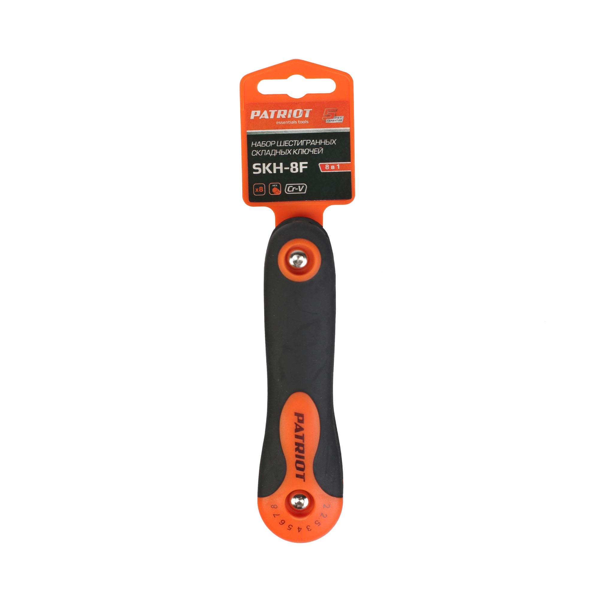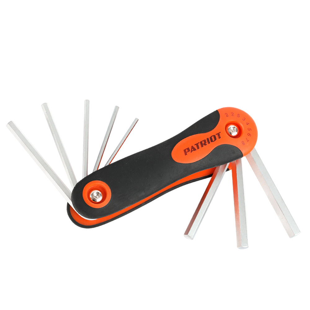 Набор раскладной PATRIOT SKH-8 F включает в себя восемь шестигранных ключей, сделанных из углеродистой стали. Размеры ключей в наборе (в мм): 2; 2,5; 3; 4; 5; 6; 7; 8. Держатель сделан из пластика и в сложенном виде занимает минимум места.