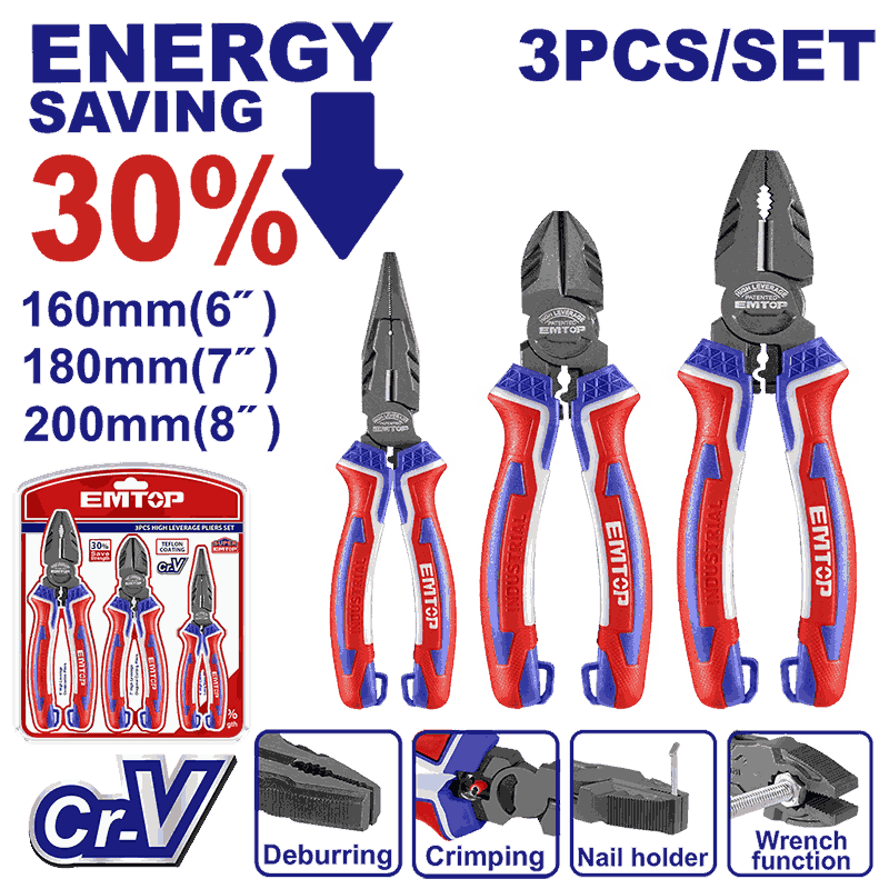 Набор шарнирно-губцевого инструмента Emtop с увеличенным рычагом 3 шт.