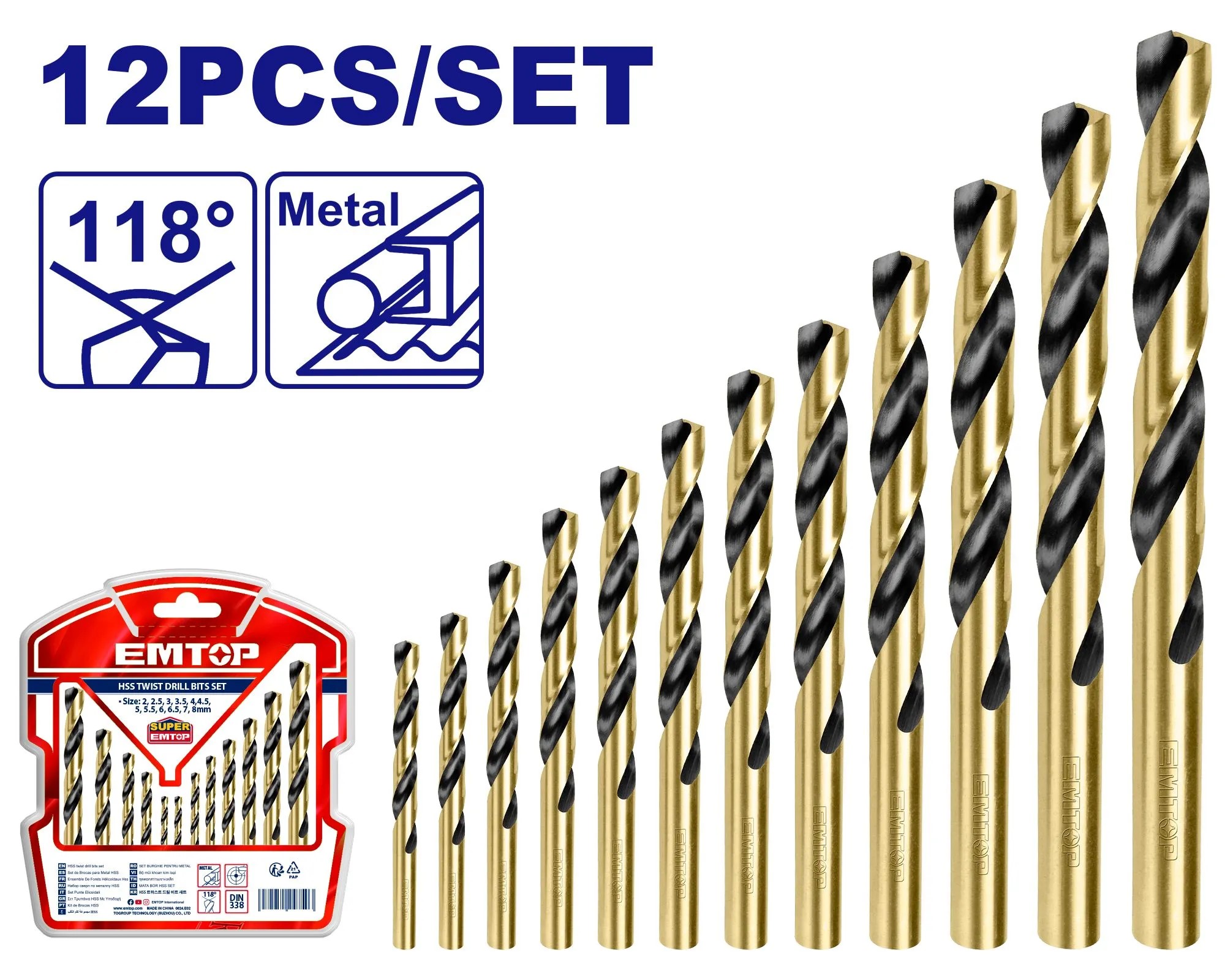 Набор сверл по металлу EMTOP 12шт 2-8мм (ETDBB11125)