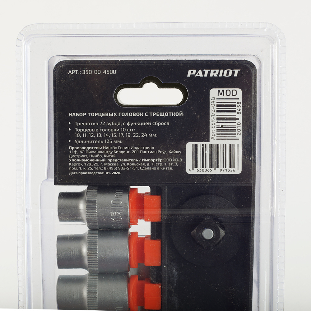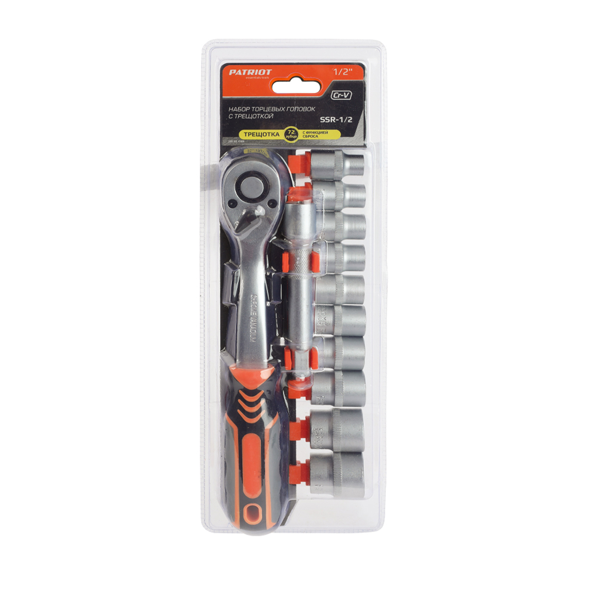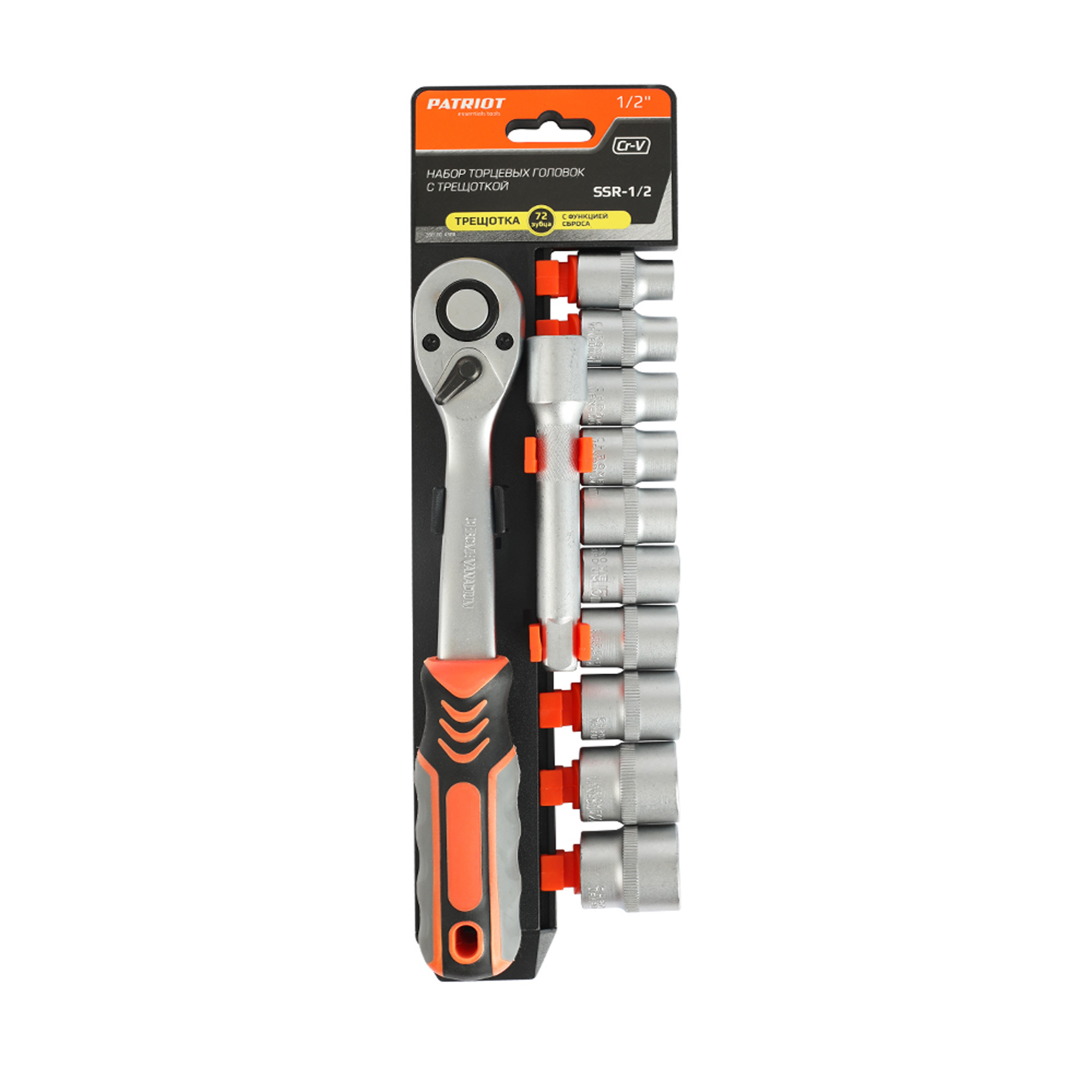 Набор торцевых головок PATRIOT SSR-1/2 для слесарно-монтажных работ. Состав комплекта: трещотка с 72 зубцами, удлинитель на 125 мм и 10 головок размером: 10,11,12,13,14,15,17,19,22 и 24 мм. Присоединительные квадраты: 1/2 дюйма. Все инструменты изготовлены из износостойкой углеродистой стали. Прорезиненная рукоять трещотки не выскальзывает из рук при работе.