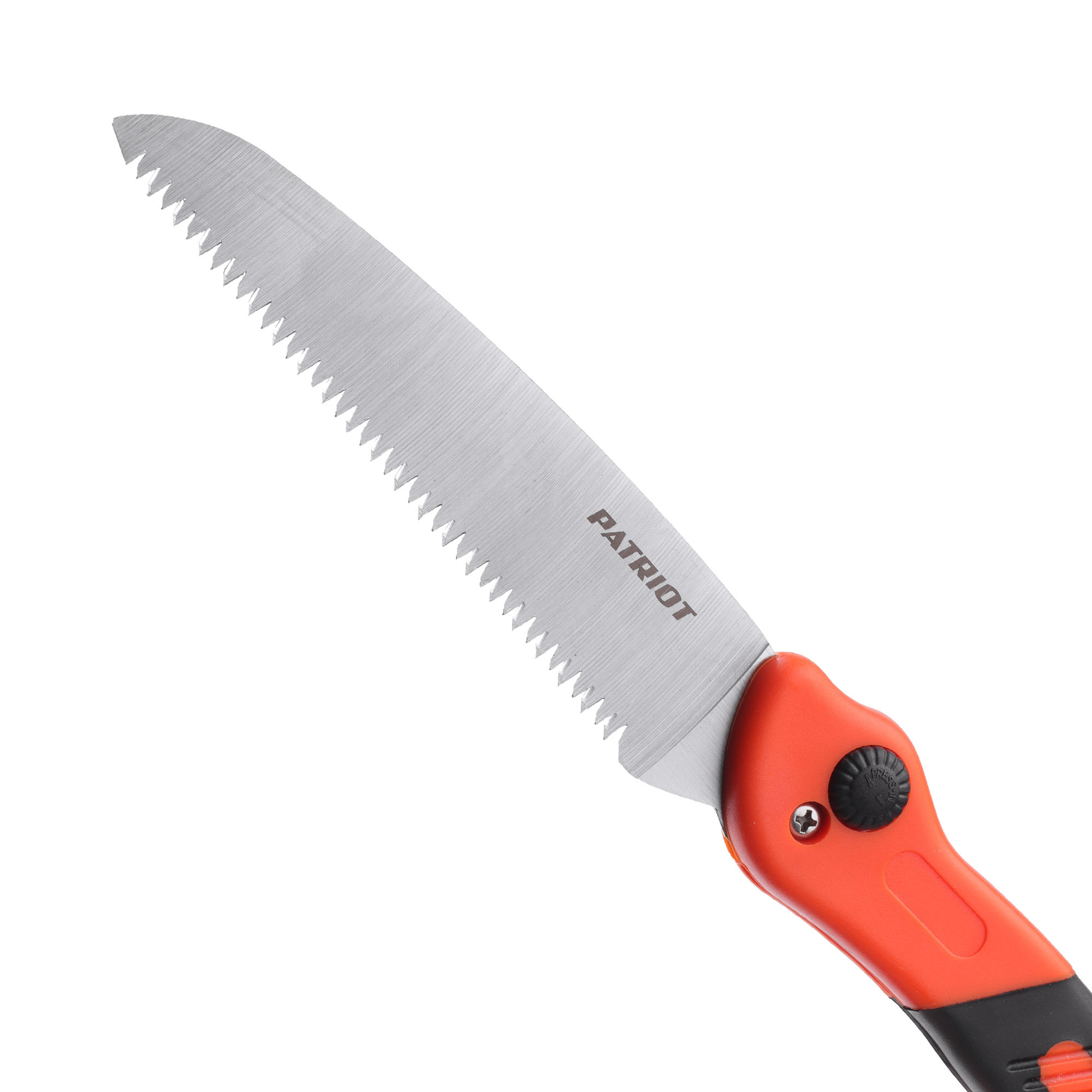Складная пила по дереву обладает небольшим весом, оснащена рукояткой из прорезиненного пластика.