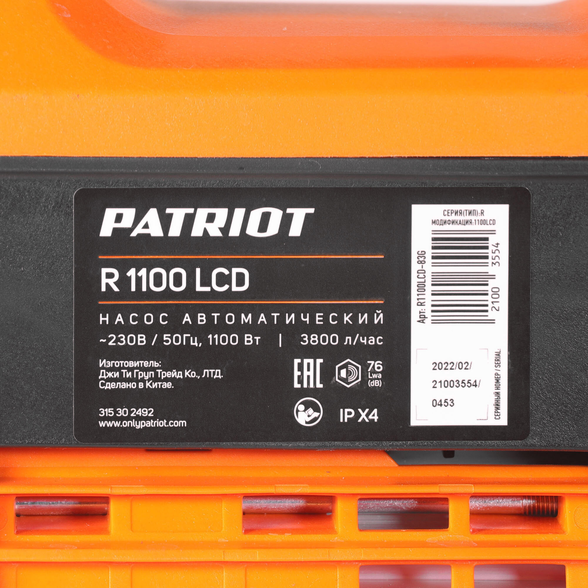 1100 Вт, 63 л/мин, 3.8 м3/ч, глубина погружения 8 м, напор 42 м, 4.2 бар, ЖК-дисплей, центробежный, защита от сухого хода и перегрева, пластик, диаметр частиц 1 мм