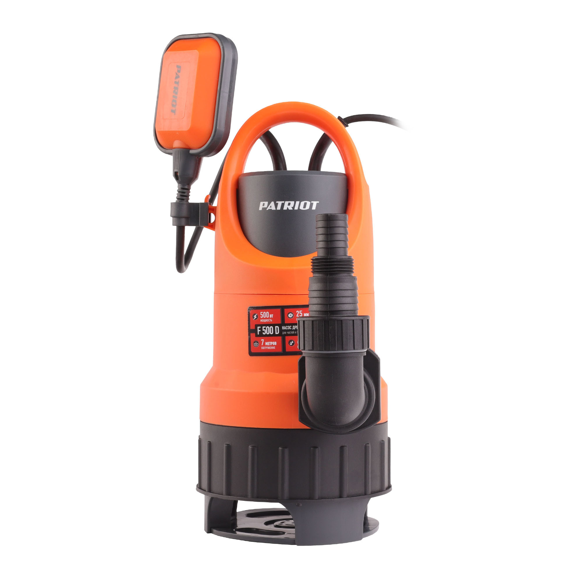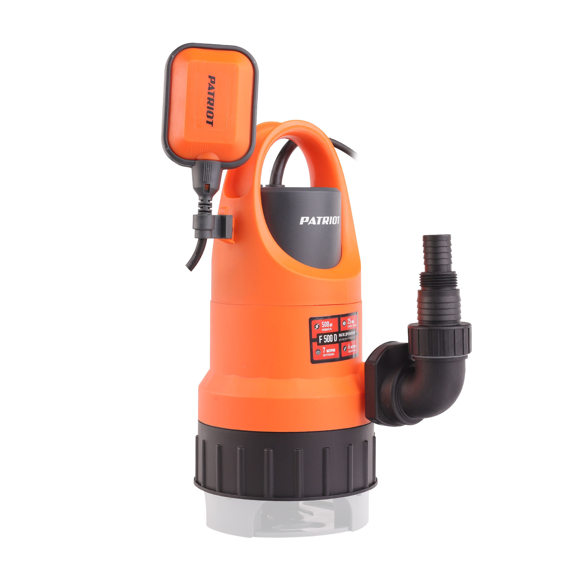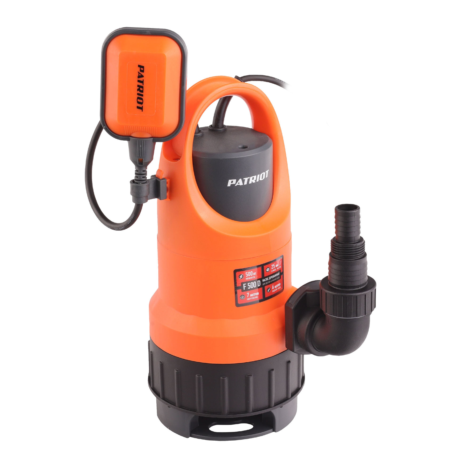 500 Вт, 125 л/мин, глубина погружения 7 м, напор 6 м, 0.6 бар, шланг 25/32 мм, насос 240 мм, для чистой и грязной воды, алюминиевая обмотка двигателя, диаметр частиц 25 мм, нижний забор, штуцер в комплекте