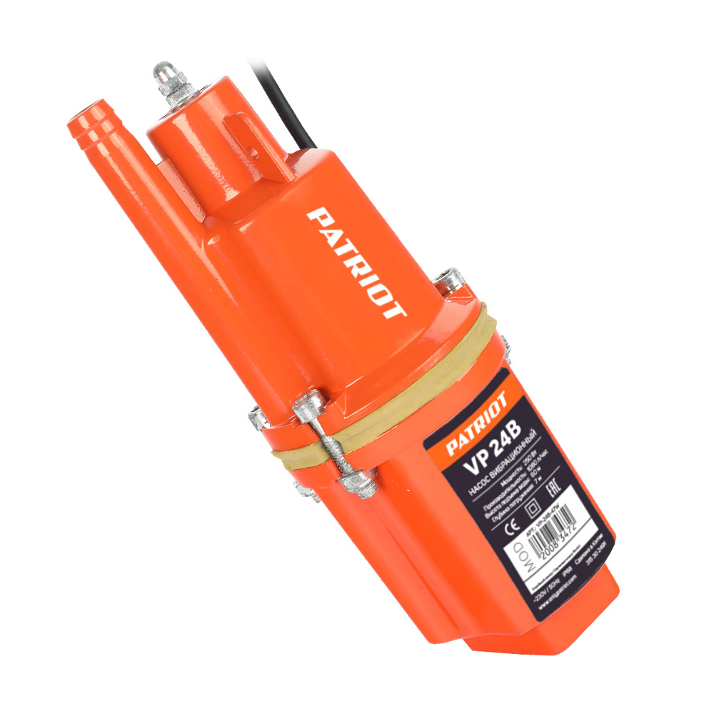 300 Вт, 18 л/мин, 1.1 м3/час, глубина погружения 7 м, 6 бар, напор 70 м, диаметр 19 мм, 3/4 quot; патрубок, вибрационный, верхний забор воды, обмотка двигателя из алюминия, защита от сухого хода и перегрева, кабель 24 м