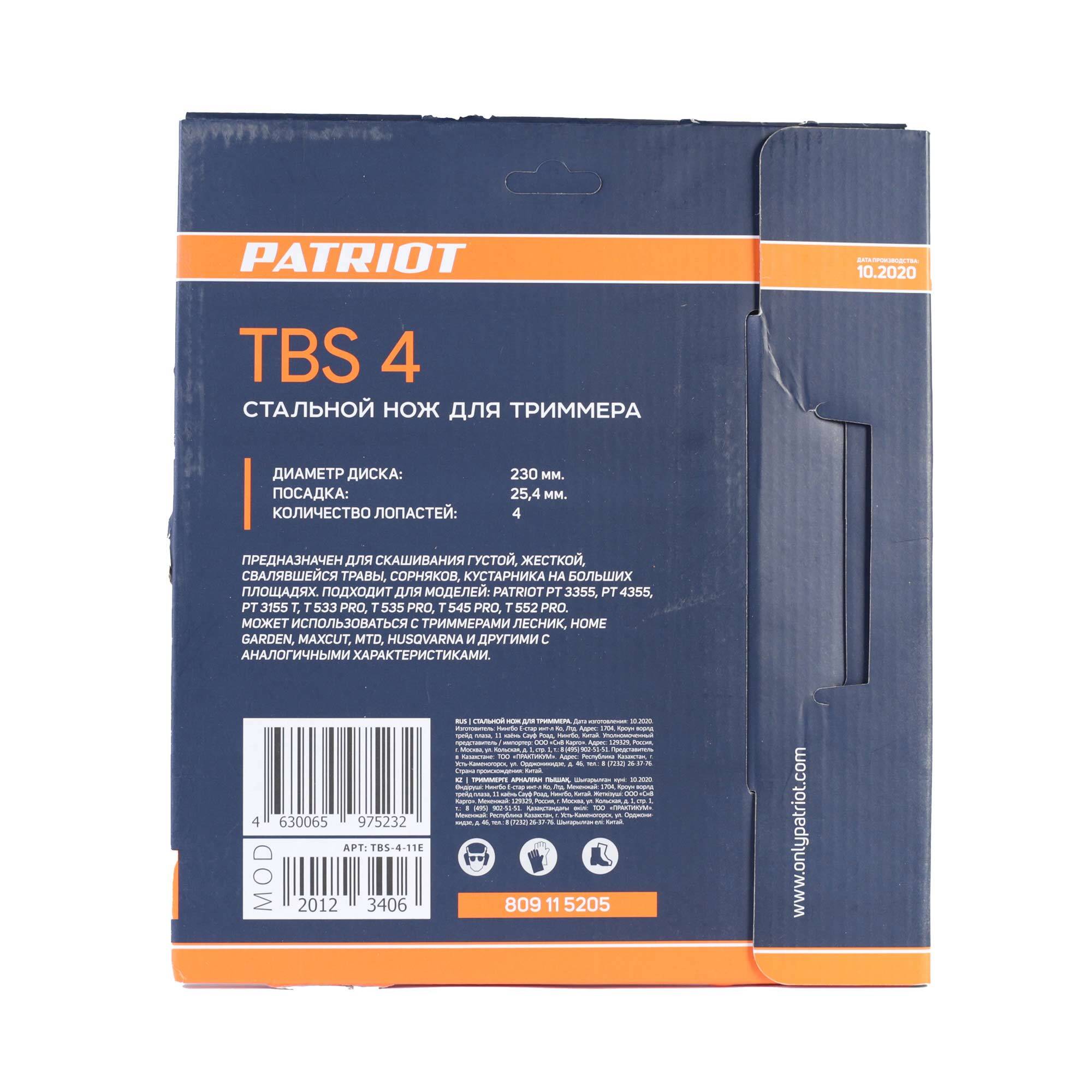 Нож для триммера PATRIOT TBS-4 используется в работе с триммеров для срезки травы на больших площадях, идеален для среза травы с толстым стеблем. Форма диска оптимальна для заготовки сена и удобна для укладывания его в валки.