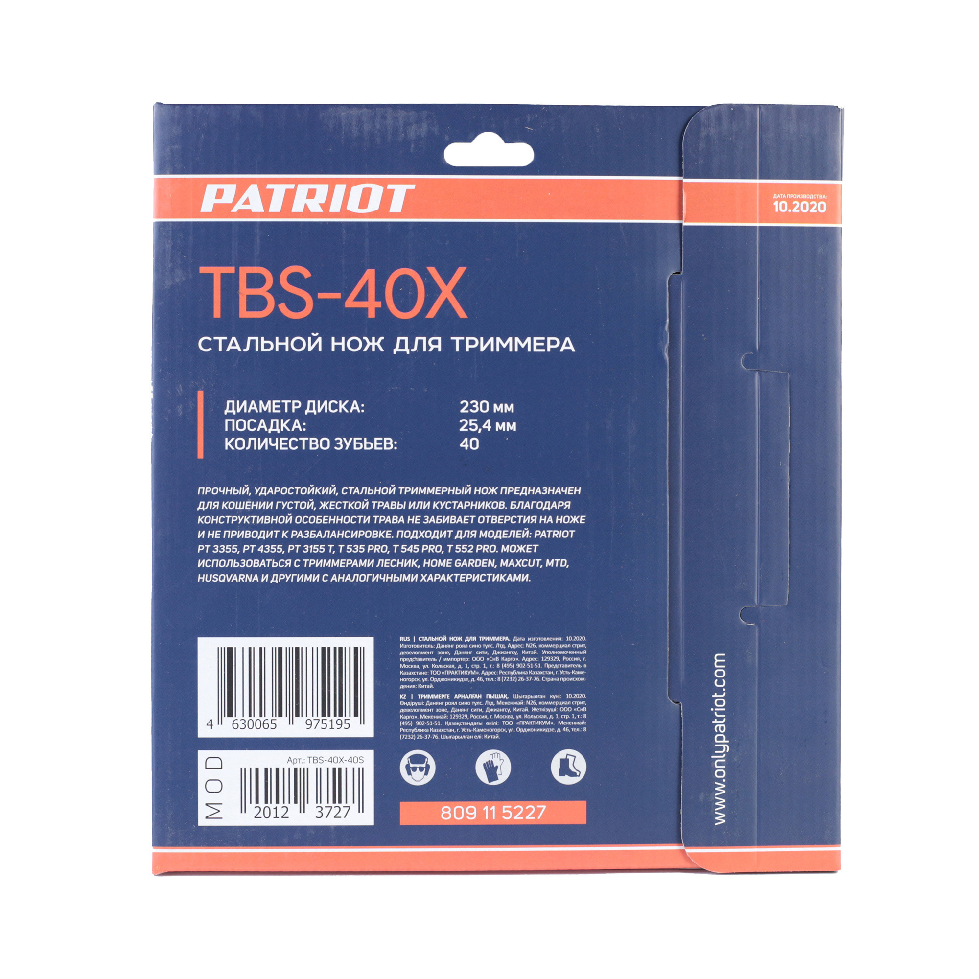 Нож для триммеров PATRIOT TBS-40 X предназначен для кошения густой, жесткой травы и кустарников. Твердосплавные зубья долго остаются острыми, а за счёт большого их количества срез получается ровным, а также равномерно распределяется нагрузка на инструмент.