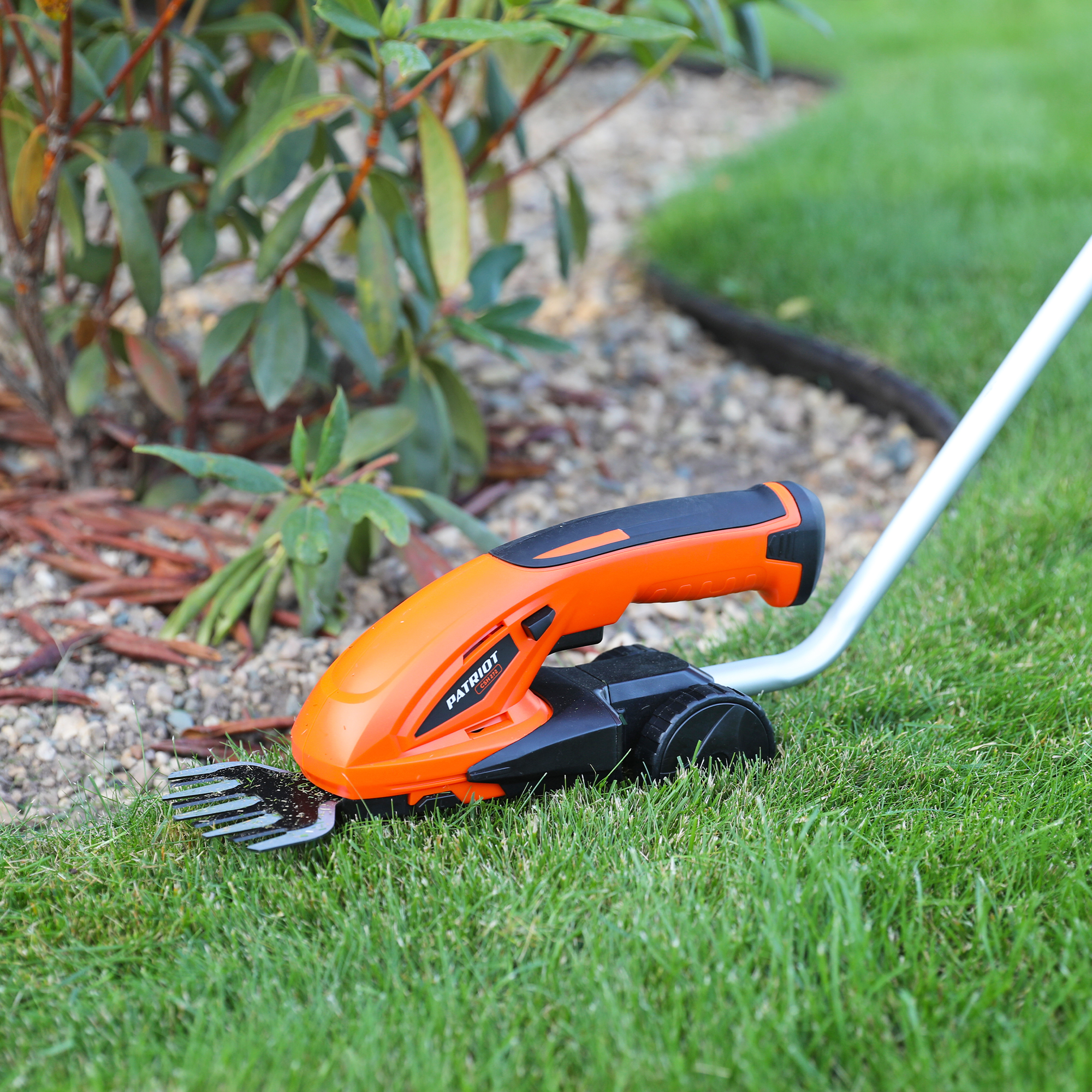Ножницы-кусторез аккумуляторные СSH 372 – удобный инструмент для стрижки газона рядом с клумбами и дорожками, подрезания поросли на декоративных кустарниках. Удлиненное лезвие позволит без труда добраться к кустарникам с мощной и низкой кроной. Ножницы справятся с побегами крыжовника, малины, хвойниками. Прорезиненная рукоятка снижает уровень вибрации при работе. Ширина насадки для травы 90 мм, длина ножа для кустарников 170 мм. На одном заряде аккумулятора работают до 35 минут. Время полной зарядки аккумулятора до 90 минут. Для еще более комфортной работы в комплект поставки включена телескопическая штанга на роликах.