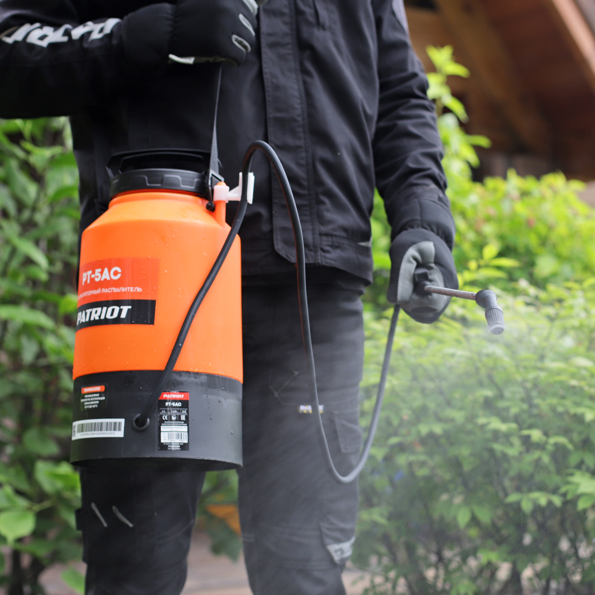 Аккумуляторный садовый опрыскиватель PT-5AC оборудован 5-литровым баком для жидкости. Применяется для работ в саду - обработки удобрениями или бережного орошения растений. Функционируют от свинцово-кислотной батареи 12 В, 1,3 А*ч. Предусмотрено ременное крепление для удобного ношения агрегата на плече.