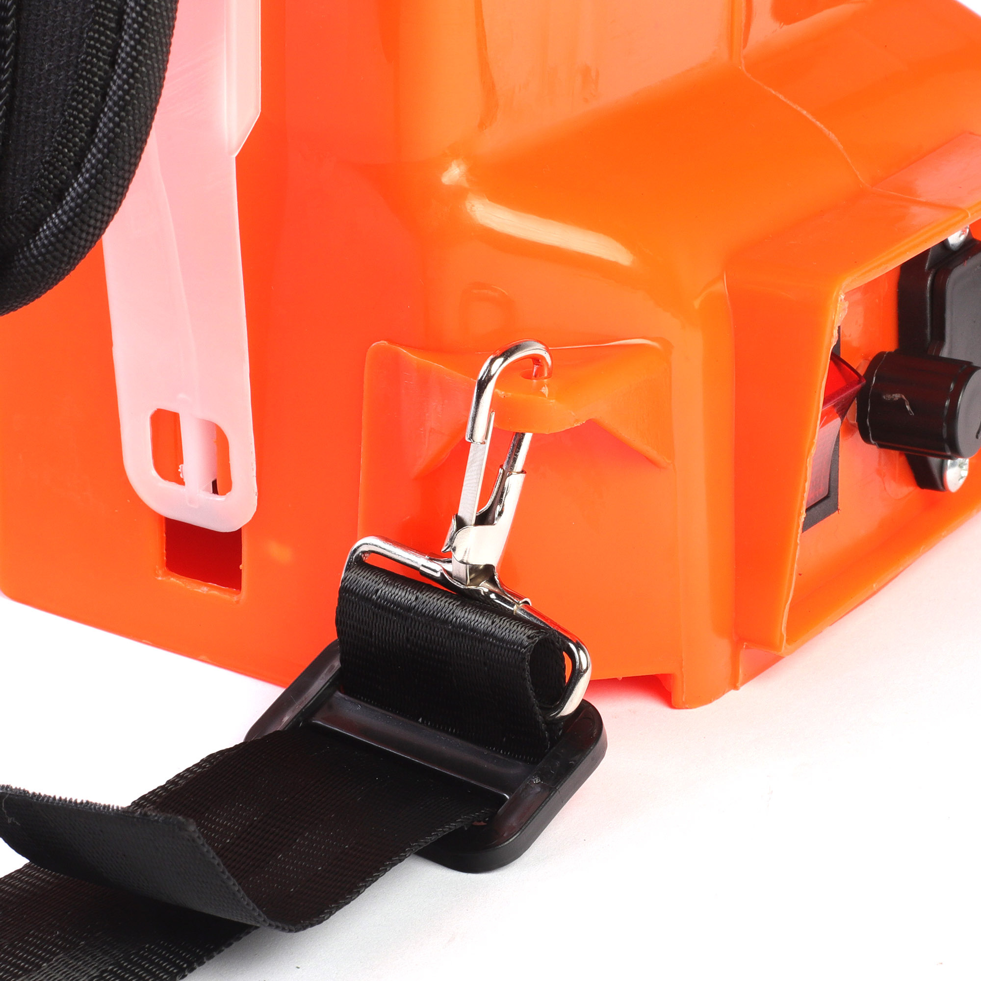 - обновленный эргономичный ранцевый ремень с мягкими накладками. Ремень надежно крепиться к распылителю с помощью металлических карабинов (а не пластиковых клипс).