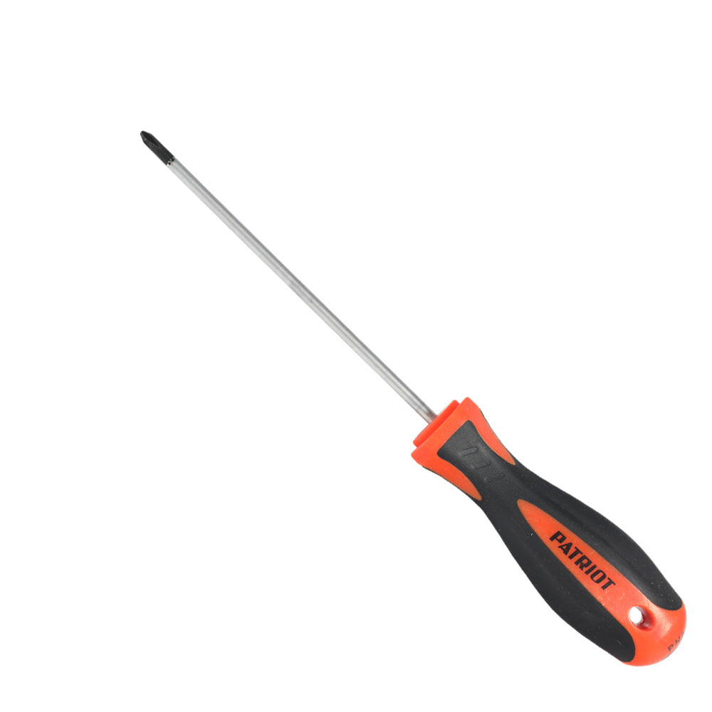 Отвертка крестовая PATRIOT PH0x100 для работы с крепежами. Стержень инструмента с магнитным наконечником выполнен из углеродистой стали. Эргономичная двухкомпонентная рукоять не скользит в руках.