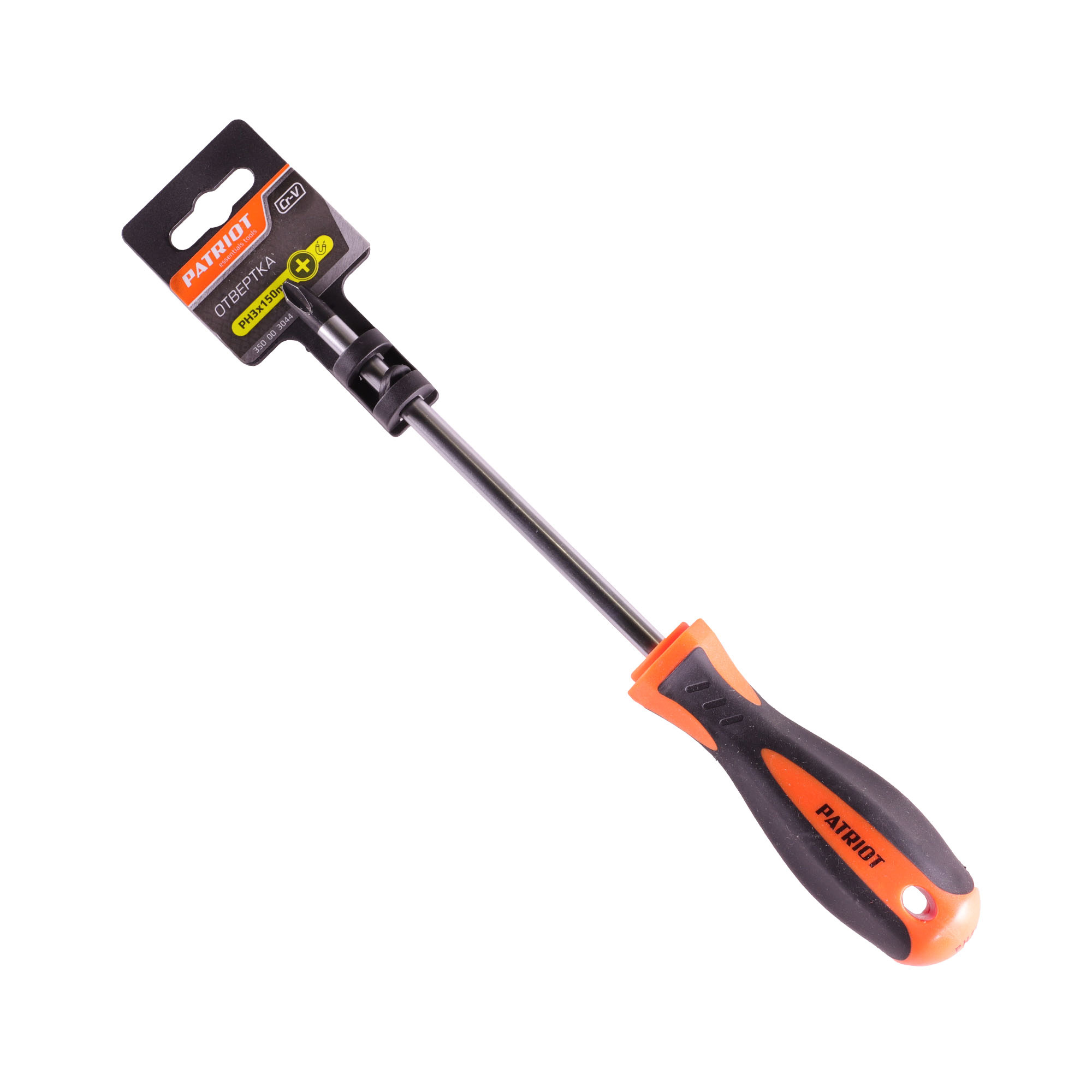Отвертка крестовая PATRIOT PH3x150 для работы с крепежами. Стержень с магнитным наконечником выполнен из хромованадиевой стали. Эргономичная двухкомпонентная рукоять не скользит в руках.