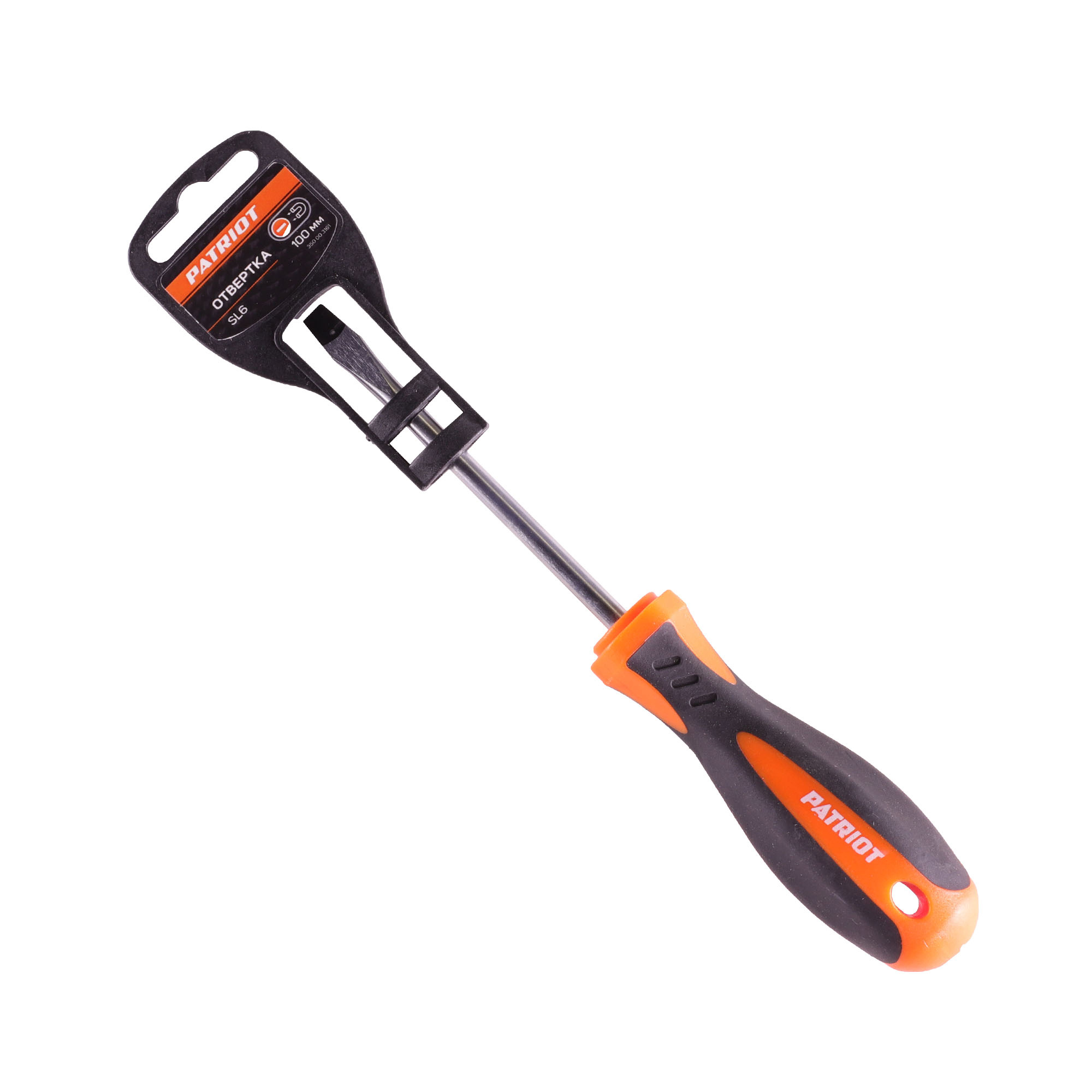 Отвертка плоская PATRIOT SL6x100 для работы с крепежами. Стержень с магнитным наконечником выполнен из крепкой хромованадиевой стали. Эргономичная двухкомпонентная рукоять не скользит в руках.
