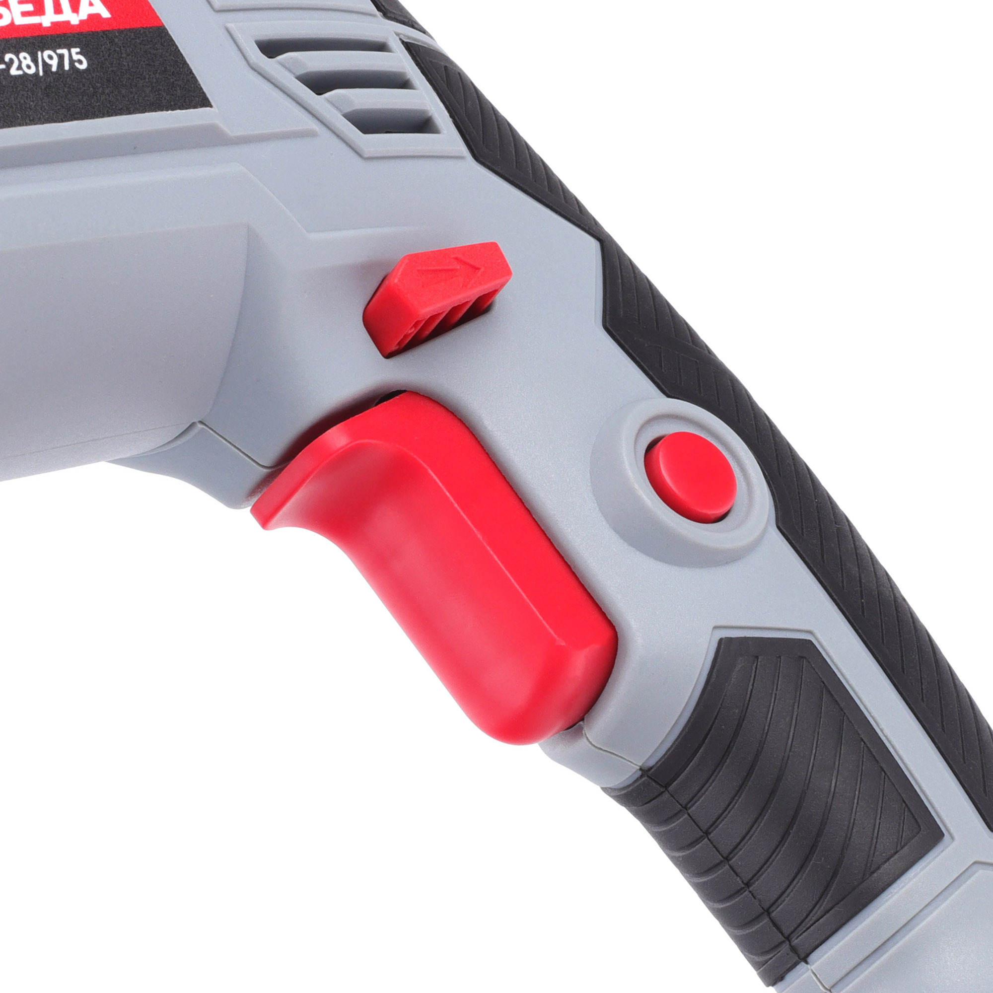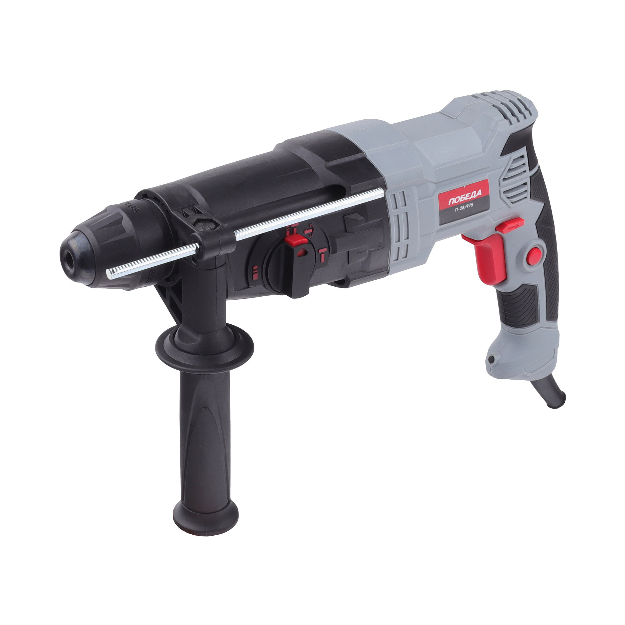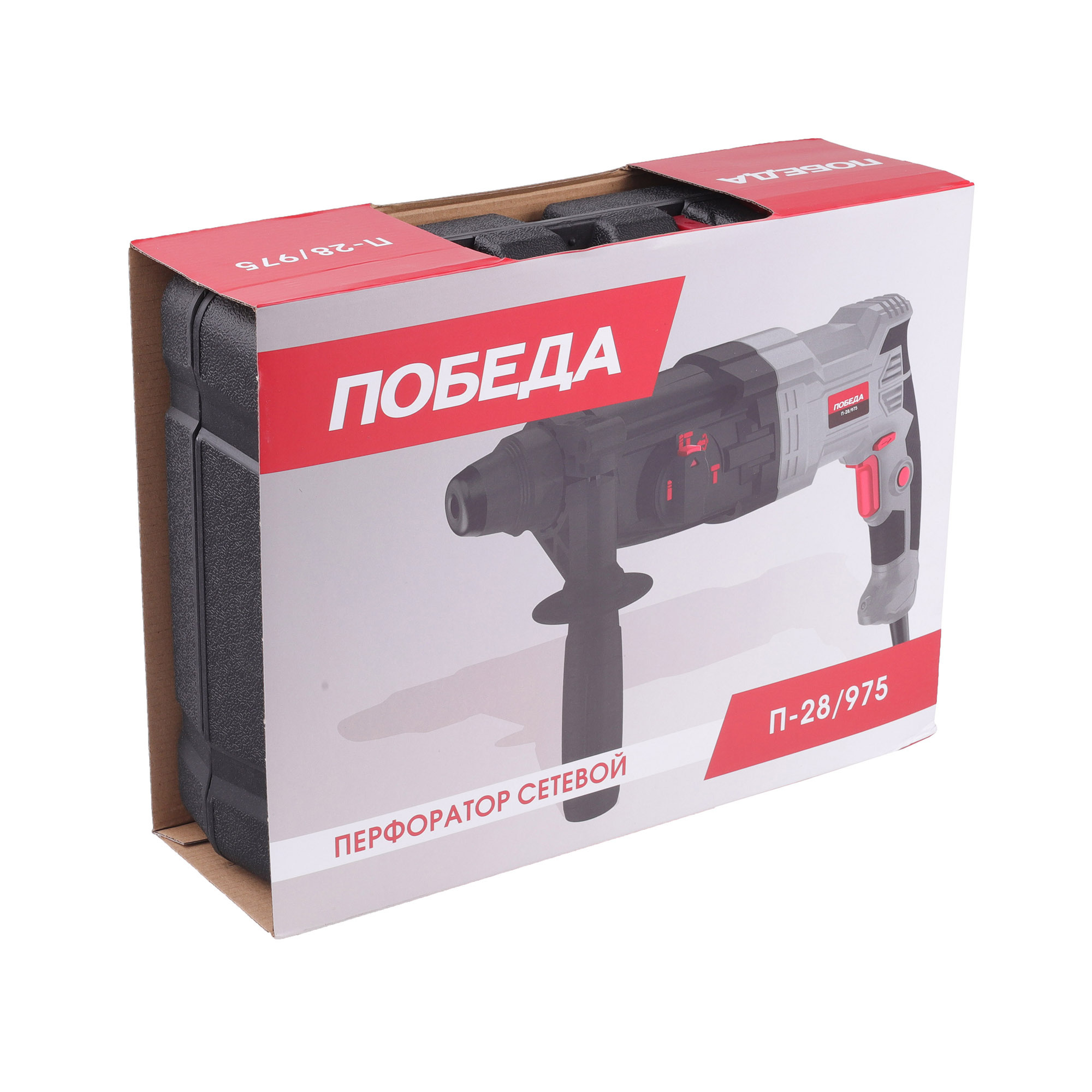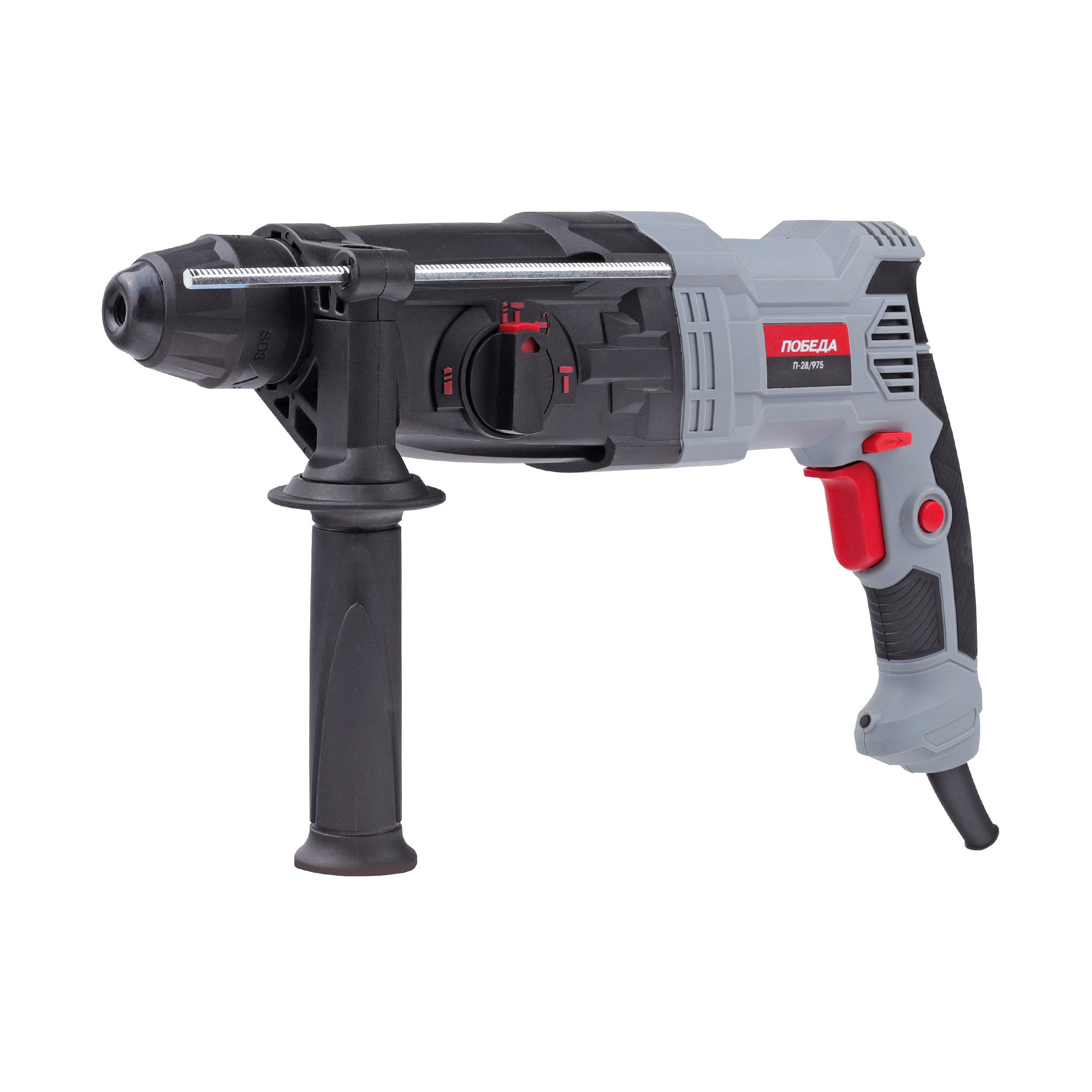 Перфоратор ПОБЕДА П-28/975 с тремя режимами работы: сверление, сверление с ударом, долбление. Патрон SDS-plus позволяет быстро заменять расходный инструмент одной рукой. Предохранительная муфта защищает оператора и инструмент от блокировки оснастки в материале.