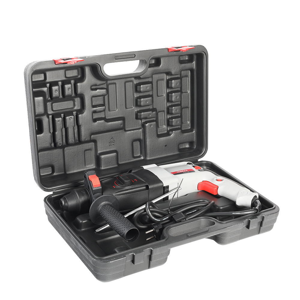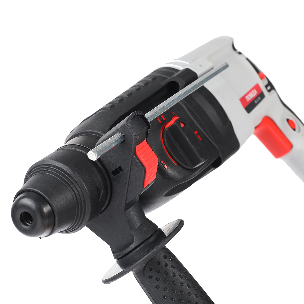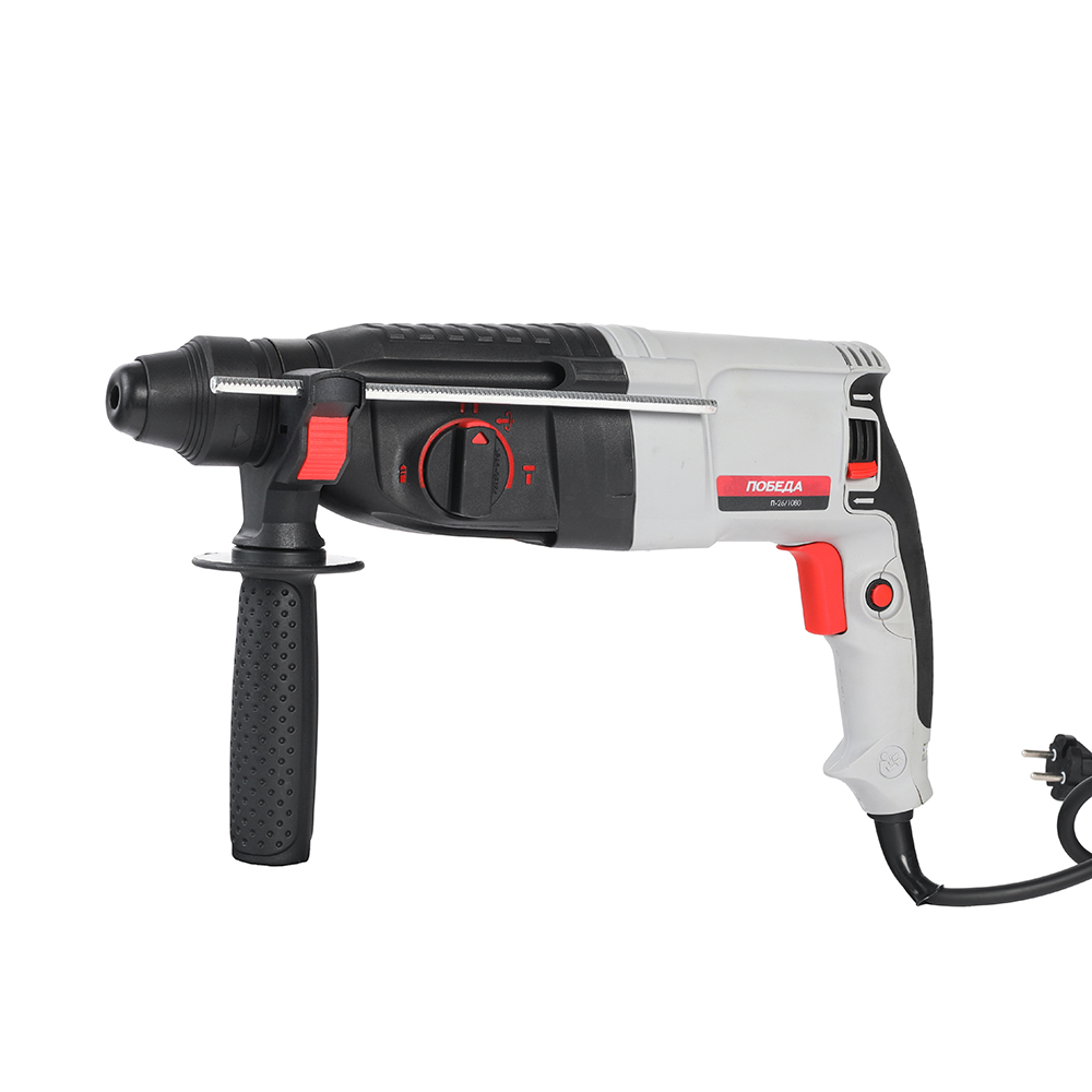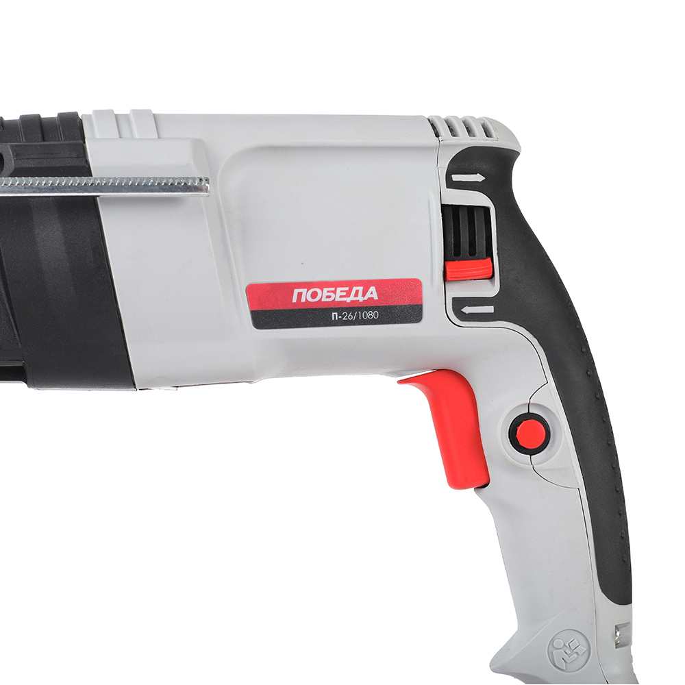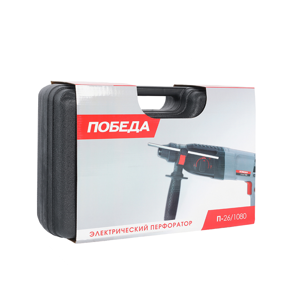Перфоратор П-26-1080 снащен тремя режимами работы: сверление с ударом и без, долбление. Также предусмотрена функция поворота долота, которая позволяет работать под разными углами. Патрон SDS-plus обеспечивает легкую смену оснастки, а пластиковый кейс помогает с легкостью транспортировать инструмент. Инструмент оснащен функцией реверса - для легкого выкручивания сверла из материала. Шнур питания в резиновой изоляции не трескается при воздействии низких температур.