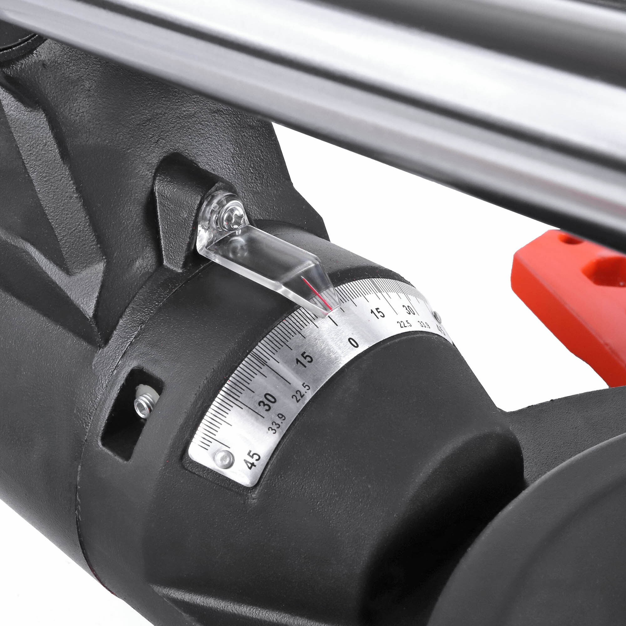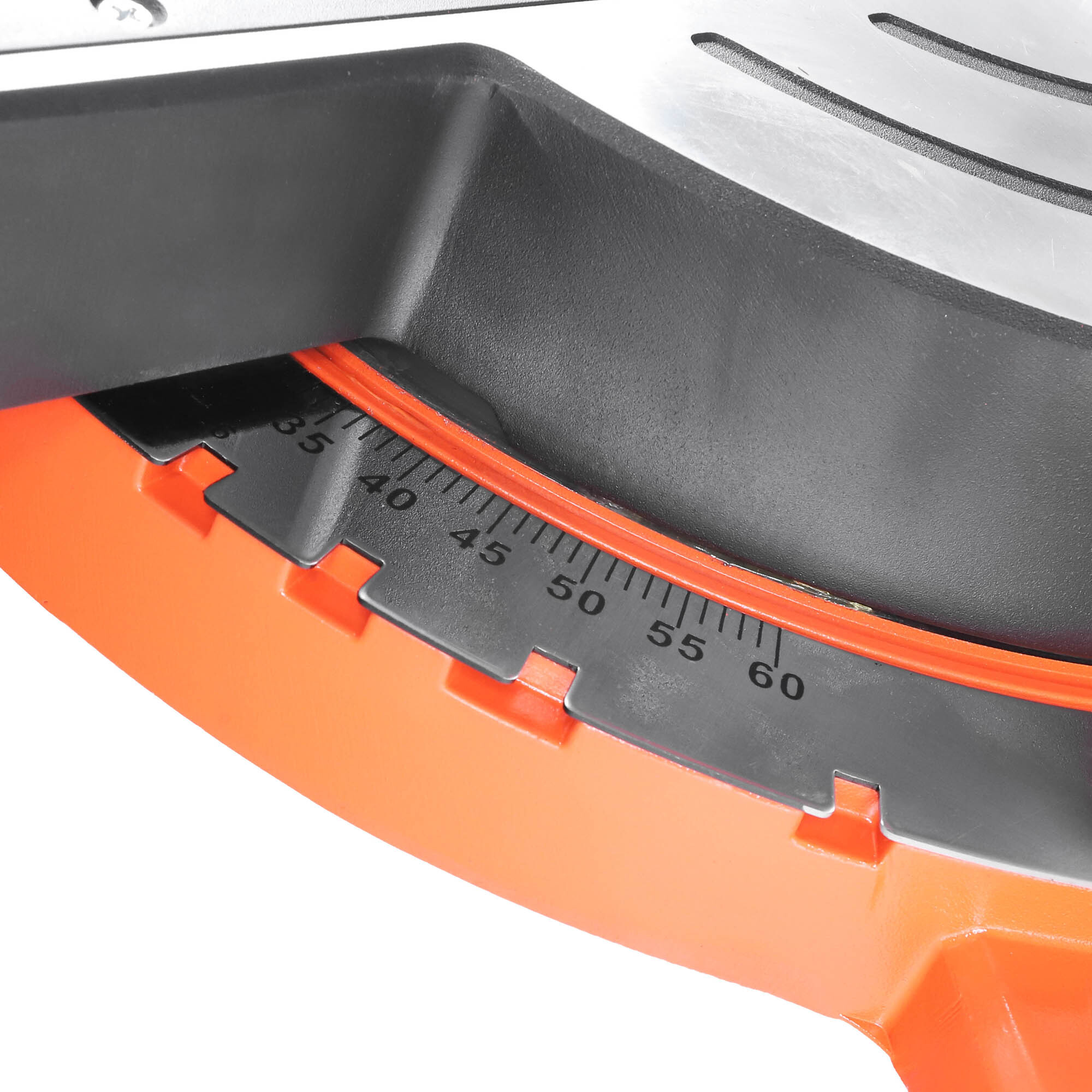 1800 Вт, 4500 об/мин, пильный диск 254 мм, 48 зубьев, посадочный диаметр 30 мм, защита от пыли, защита от перегрузок, пылесборник, подсветка, плавный пуск, блокировка случайного включения, ла зернистостьая направляющая