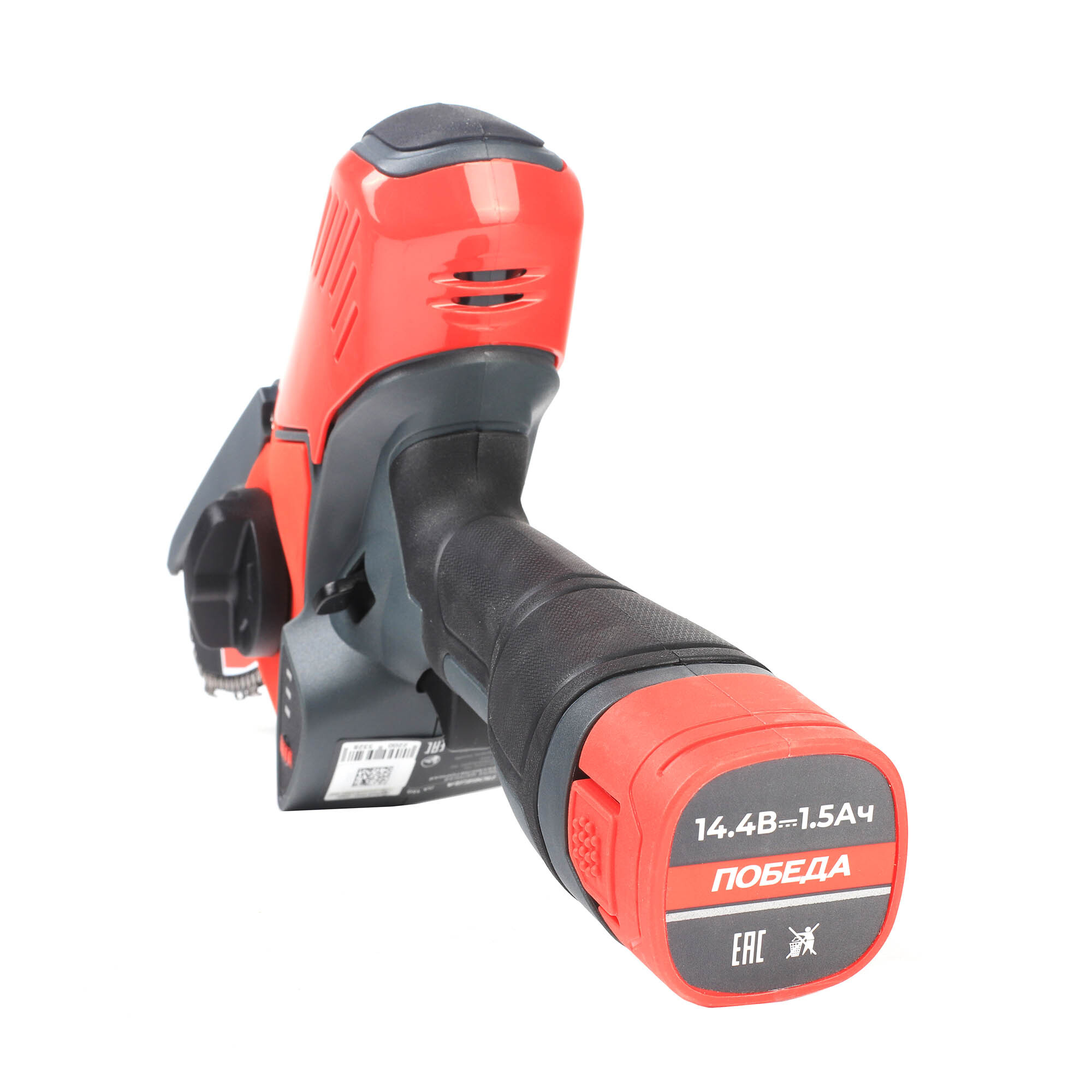14.4 В, Li-ion, 1.5 Ач, шина 10 см, шаг цепи 1/4 дюйм, 28 звеньев, ЗУ и АКБ в комплекте, масленка