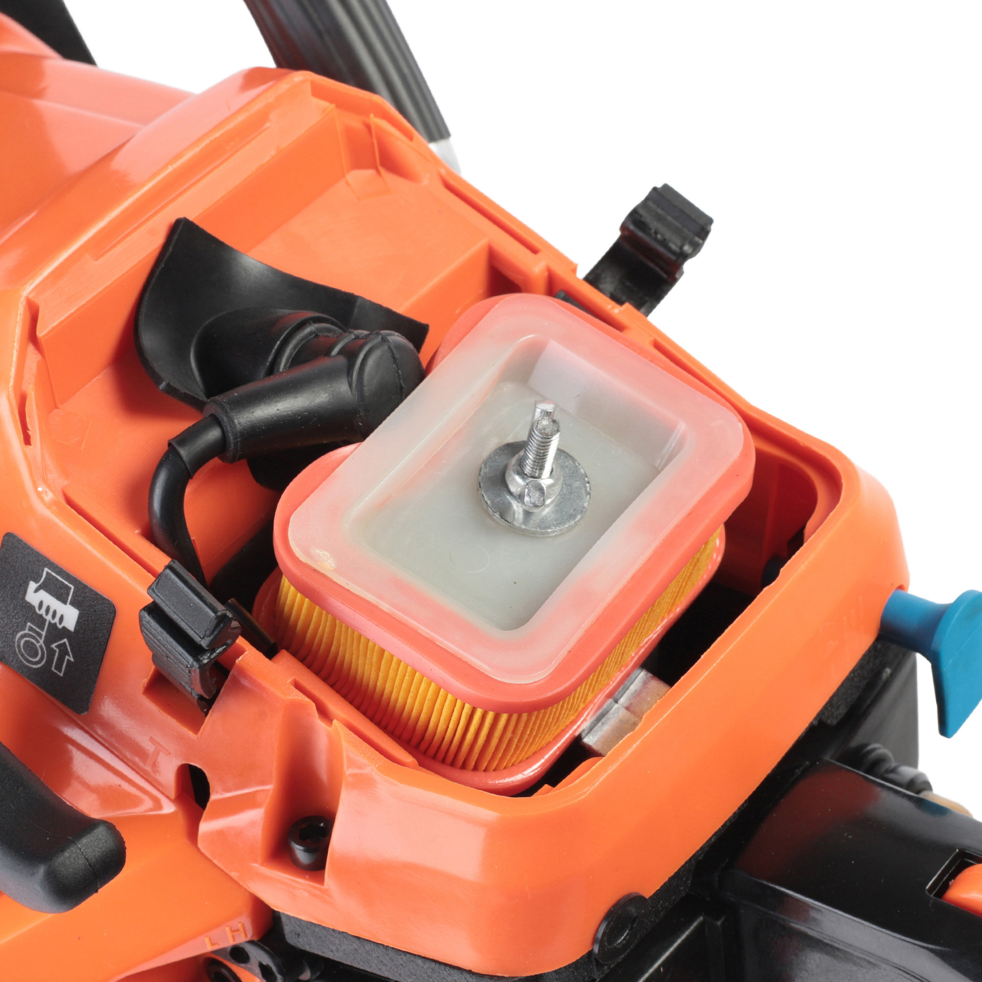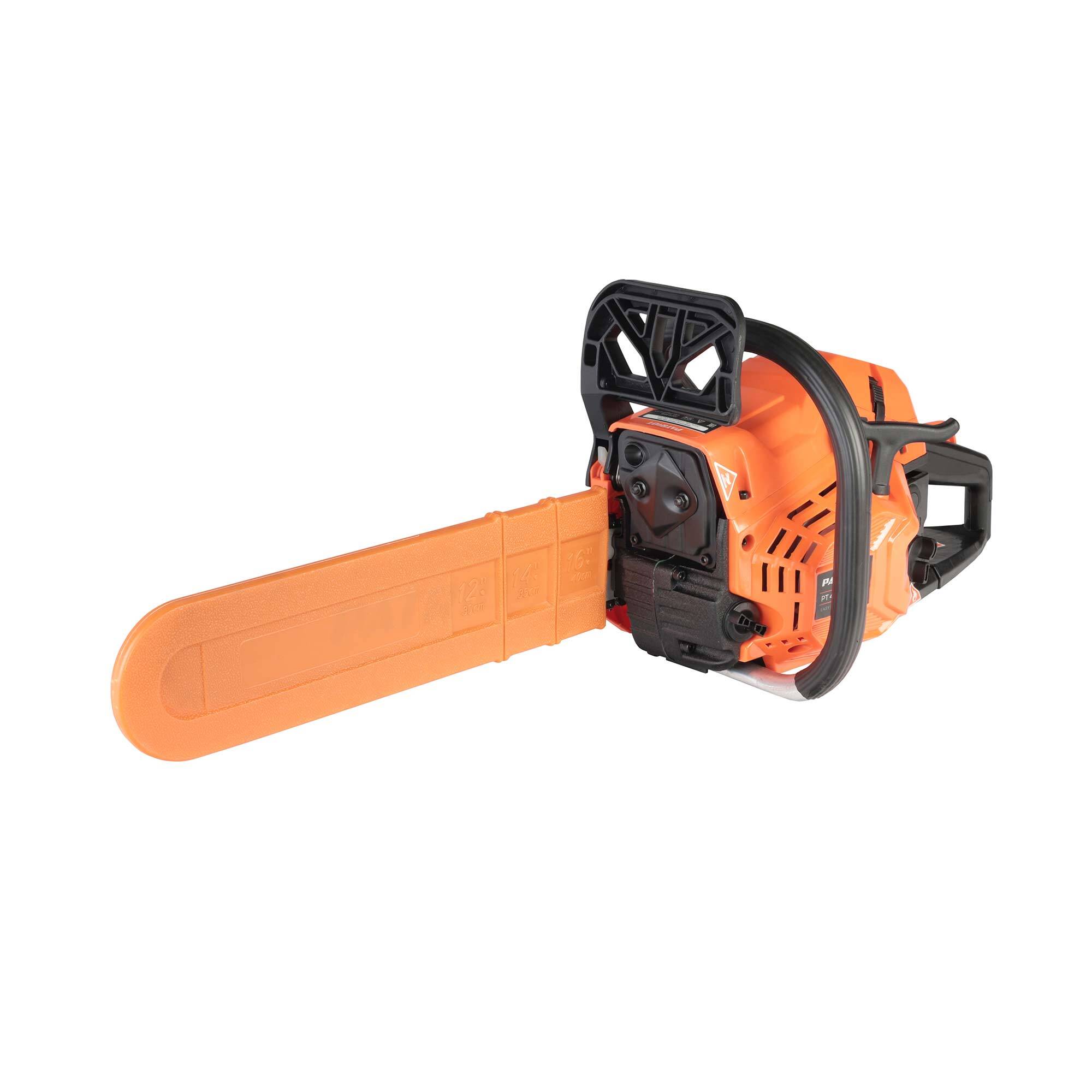 2.9 л.с, цепь 325 quot;, шина 16 quot;/40 см, 66 звеньев, ширина паза 1.5 мм, 45 см.куб, бак 0.55 л, 11500 об/мин, тормоз цепи, легкий запуск, автосмазка цепи, прорезиненная рукоятка