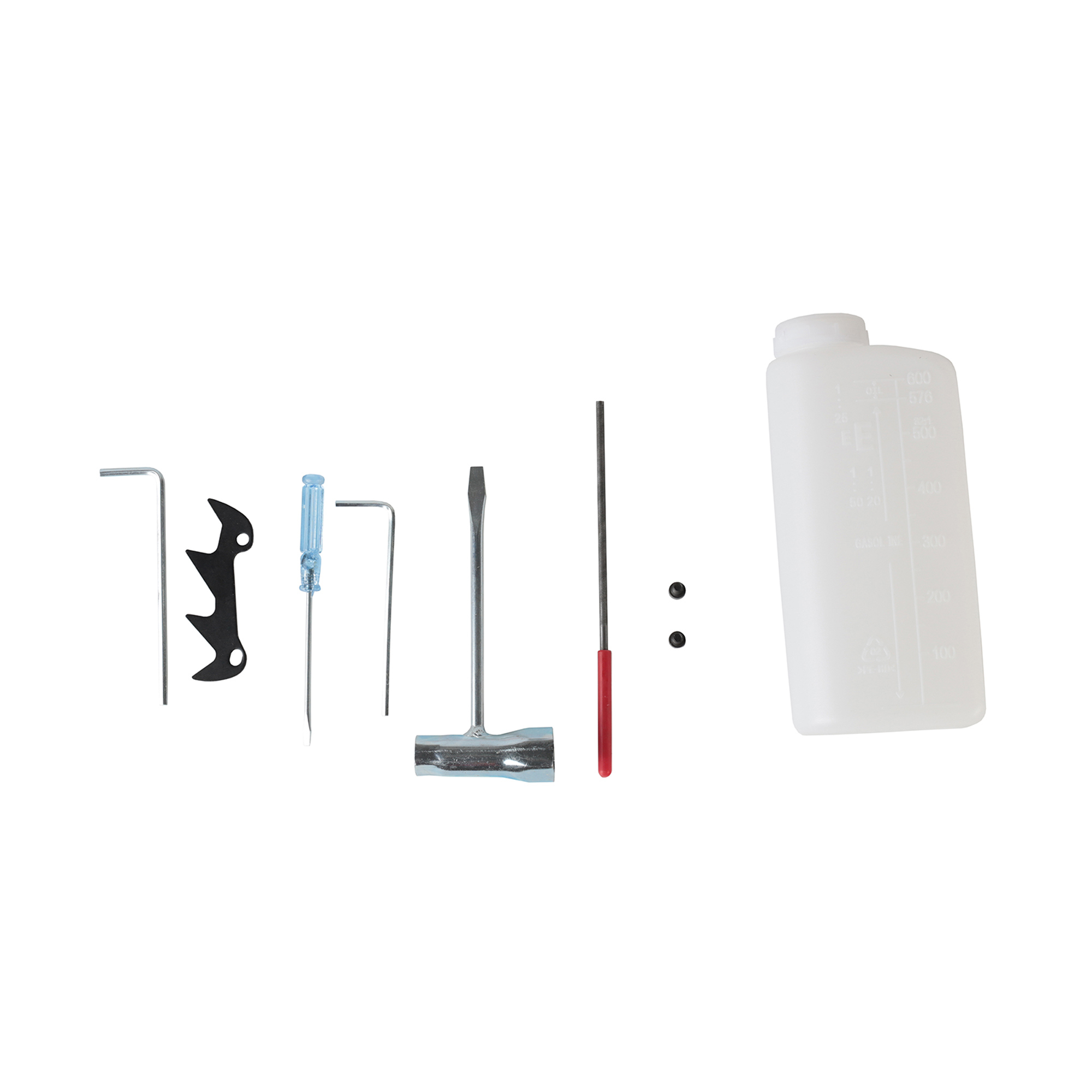 Пила цепная бензиновая; Шина; Кожух шины; Цепь; Упор с комплетом крепежа; Набор ключей (опционально); Емкость для приготовления топливной смеси; Инструкция по эксплуатации;