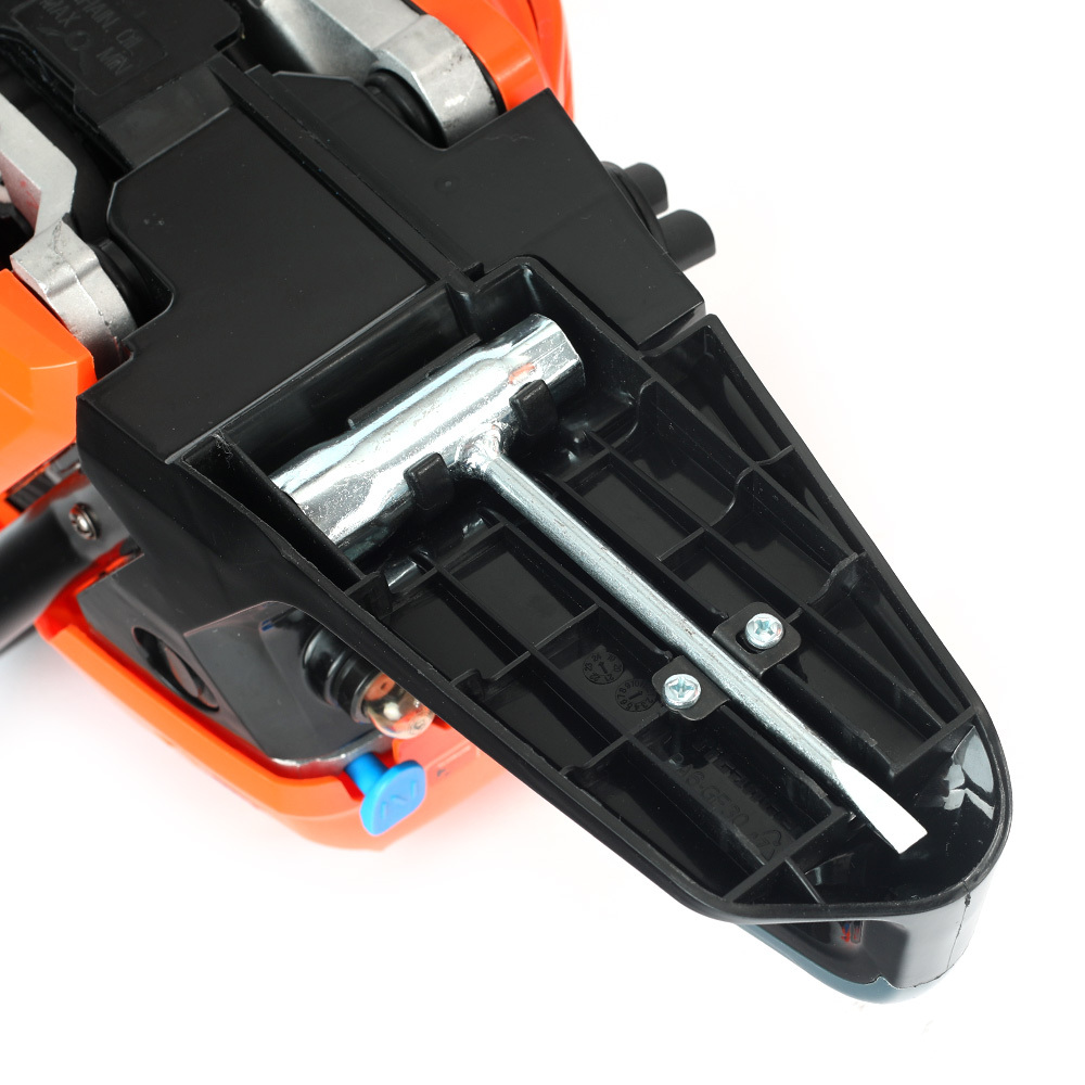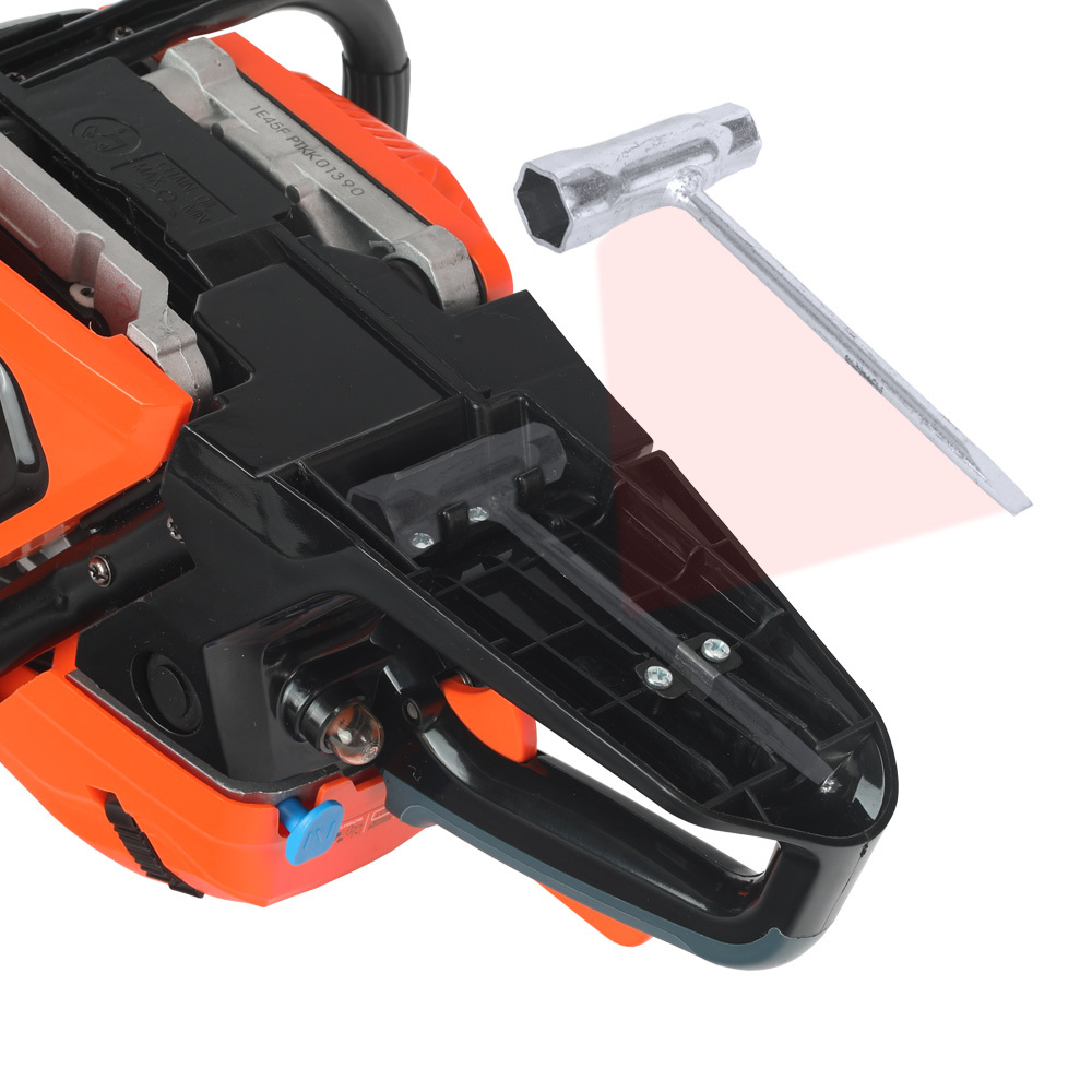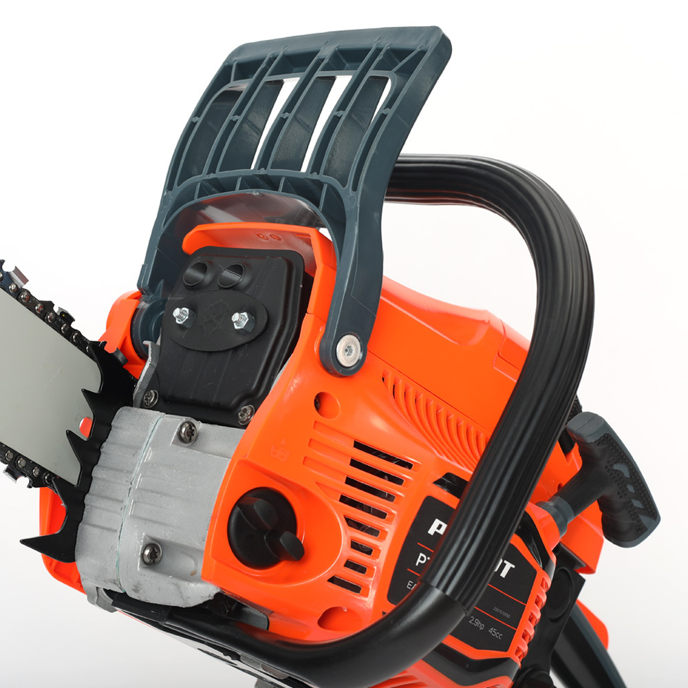 2.9 л.с, цепь 325 quot;, шина 18 quot;/45 см, 72 звена, ширина паза 1.5 мм, 45 см.куб, бак 0.55 л, 11000 об/мин, тормоз цепи, легкий запуск, автосмазка цепи, прорезиненная рукоятка