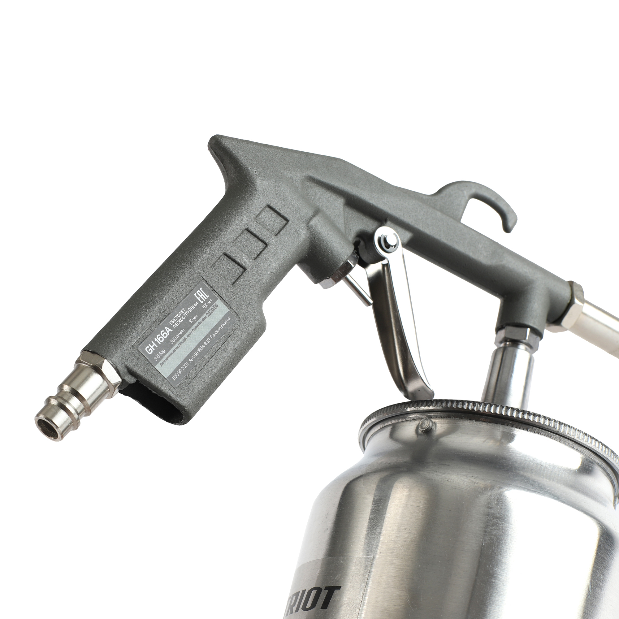 Пистолет пневматический пескоструйный Patriot GH 166А предназначен для очистки различных поверхностей с помощью воздуха, смешанного со специальным абразивным веществом. Обычно в качестве этого вещества используется специальный песок, который подается под высоким давлением, созданное компрессором.