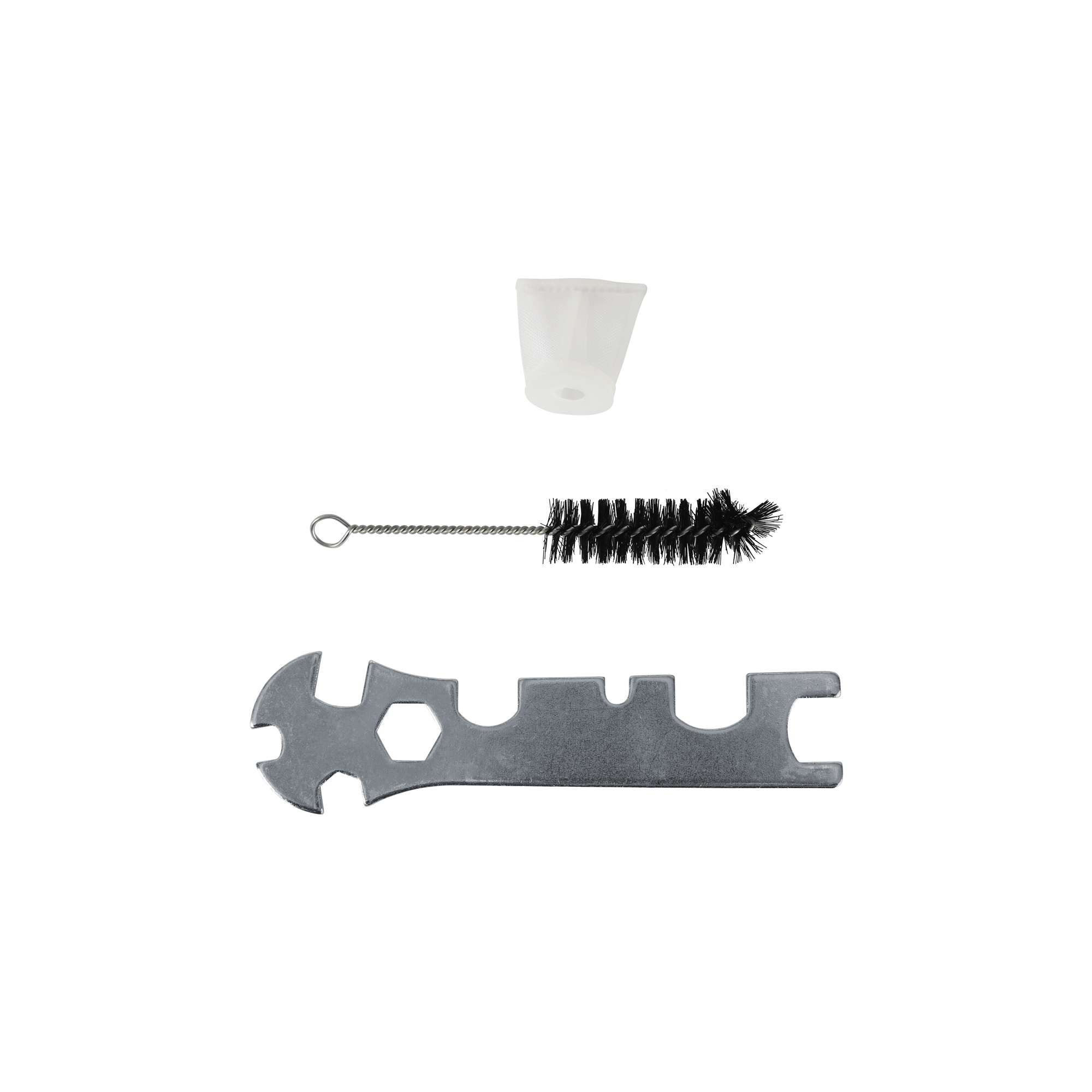 Пневмокраскораспылитель с бачонком; Многофункциональный ключ; Щеточка для очистки; Фильтр; Инструкция по эксплуатации;