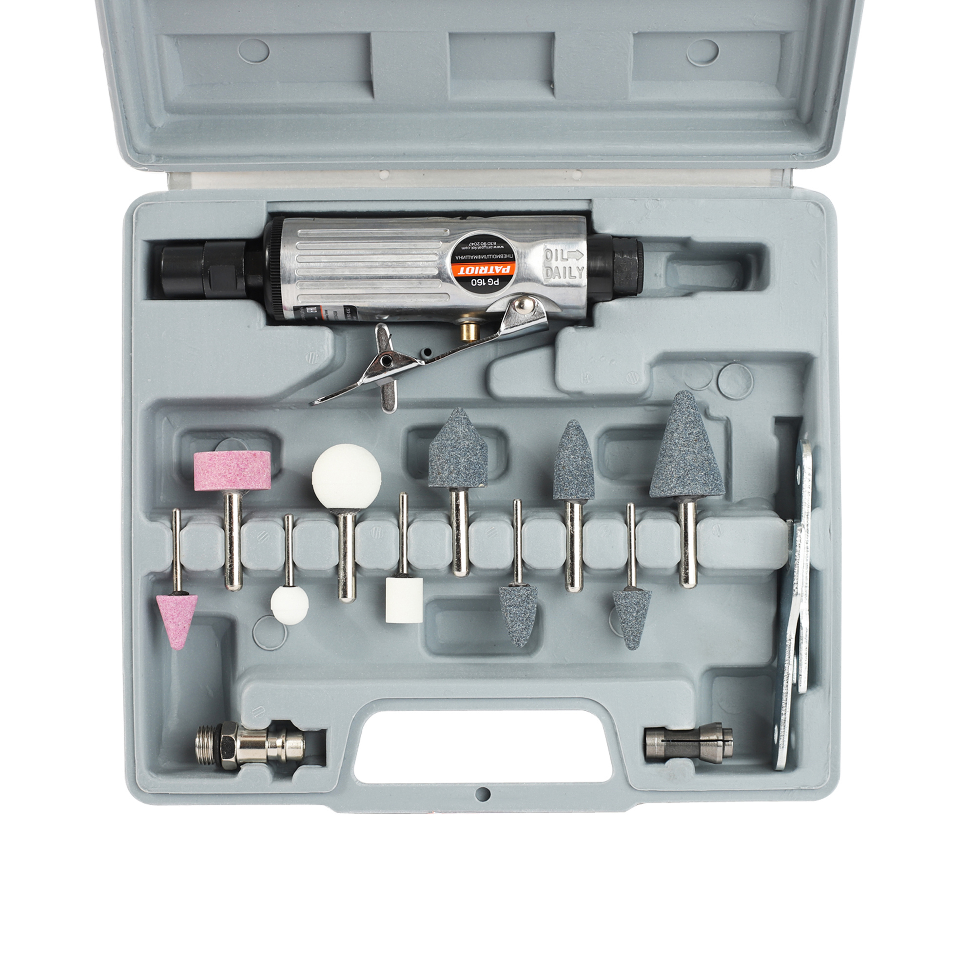 Прямая пневмошлифмашина PATRIOT PG 160 подходит для шлифования тонких сварных швов, обработки контуров, полирования поверхностей. Поставляется с набором шлифкамней и с кейсом, удобным для хранения и транспортировки. Модель имеет длинную широкую клавишу пуска - для удобного пользования инструментом. Может быть использована для работы в труднодоступных местах.