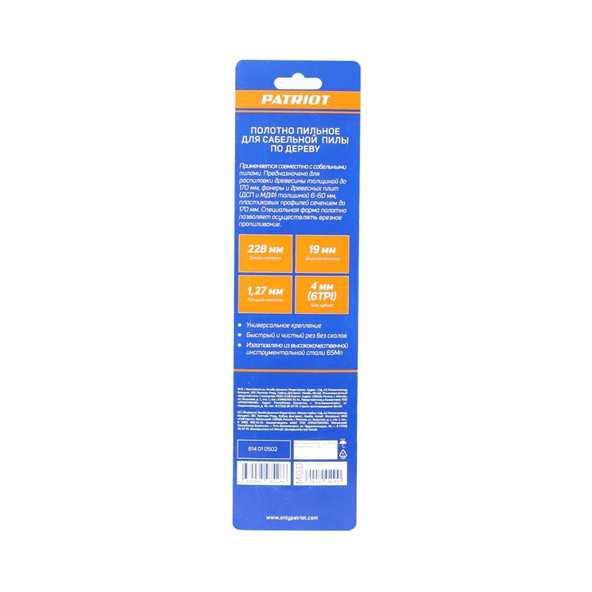 quot;Полотно пильное для сабельной пилы предназначено для распиловки древесины, фанеры, древесных плит (ДСП и МДФ) и пластиковых профилей. Обеспечивает чистый пропил без сколов. Специальная форма полотна рассчитана для врезного пропиливания.