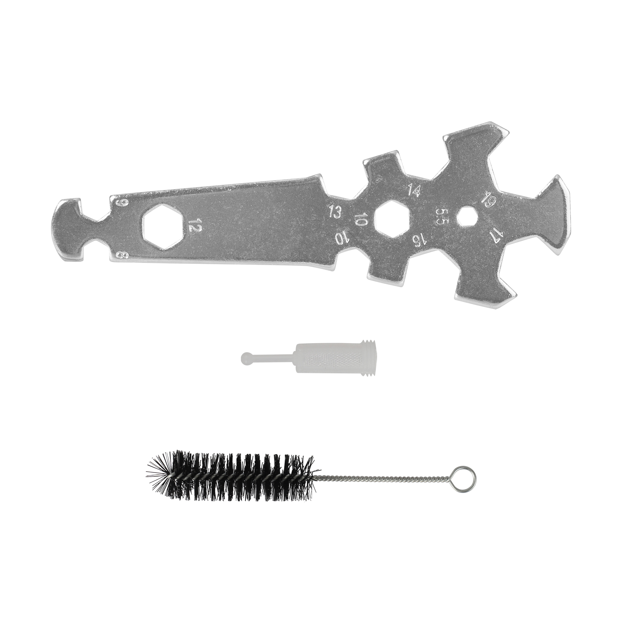 Пневмокраскораспылитель с бачонком; Многофункциональный ключ; Щеточка для очистки; Инструкция по эксплуатации;
