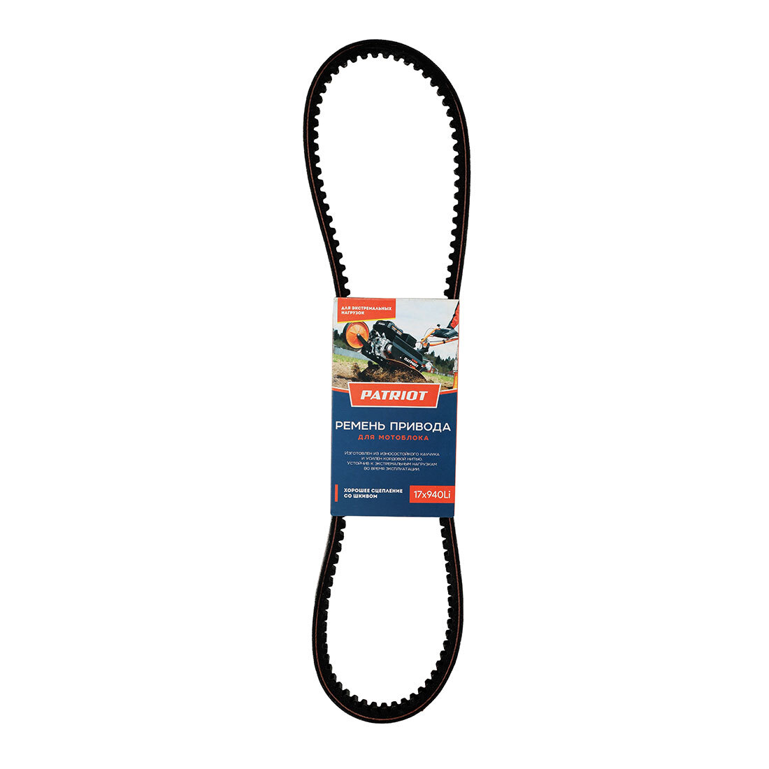 Ремень PATRIOT 17X940 Li для мотоблока Калуга. Необходим для передачи крутящего момента с двигателя на ведомый вал, за счет чего мотоблок начинает движение. Ремень изготовлен из прочных материалов, имеет длительный период эксплуатации.