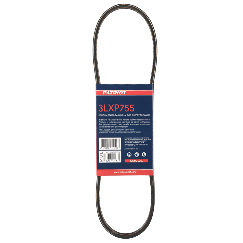 Ремень PATRIOT 3LXP755 привода шнека для снегоуборщика Сибирь 999ЕКХ